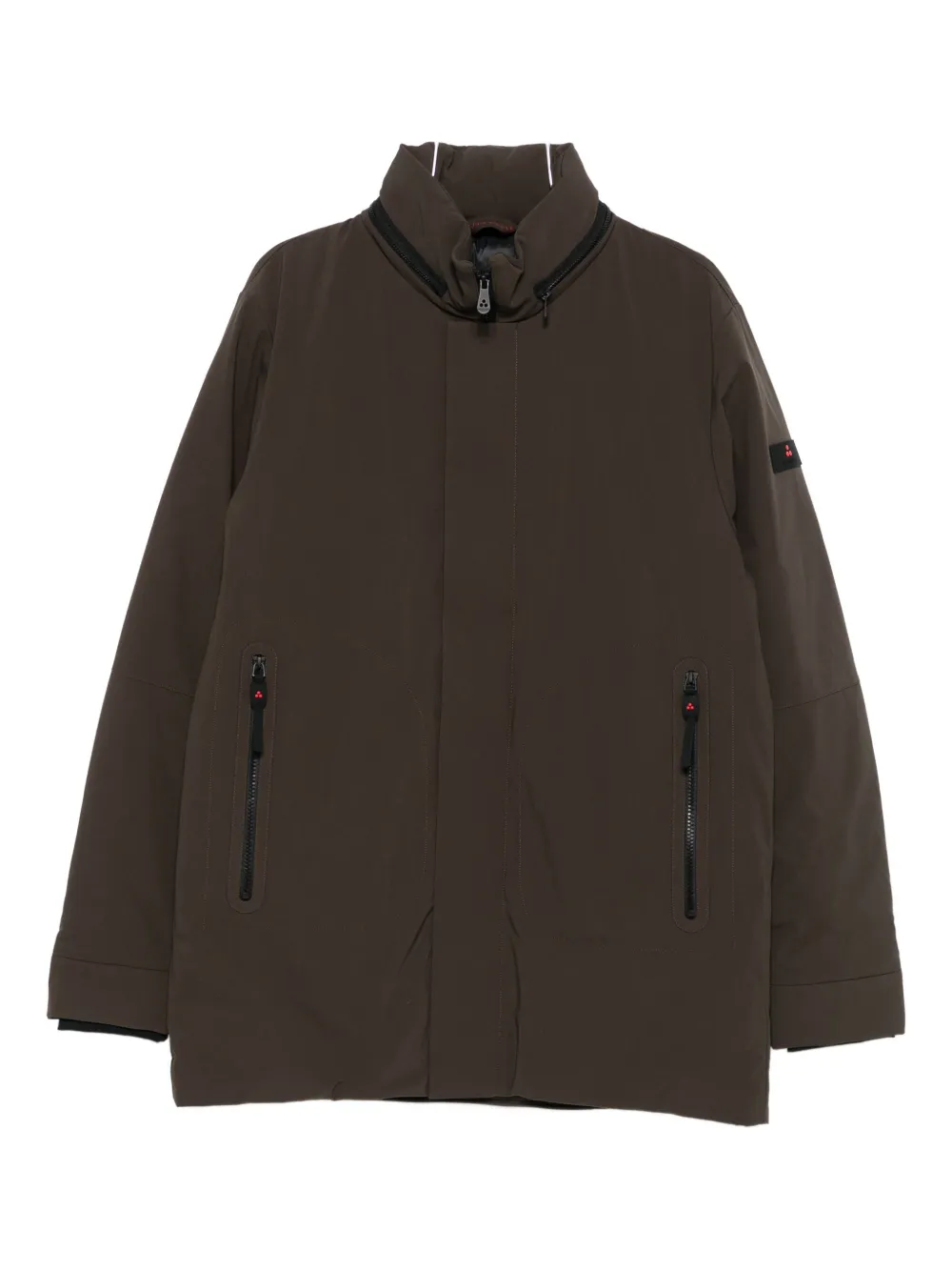 Коричневый застежка-молния спереди высокий воротник нашивка с логотипом боковые карманы на молнии длинные рукава