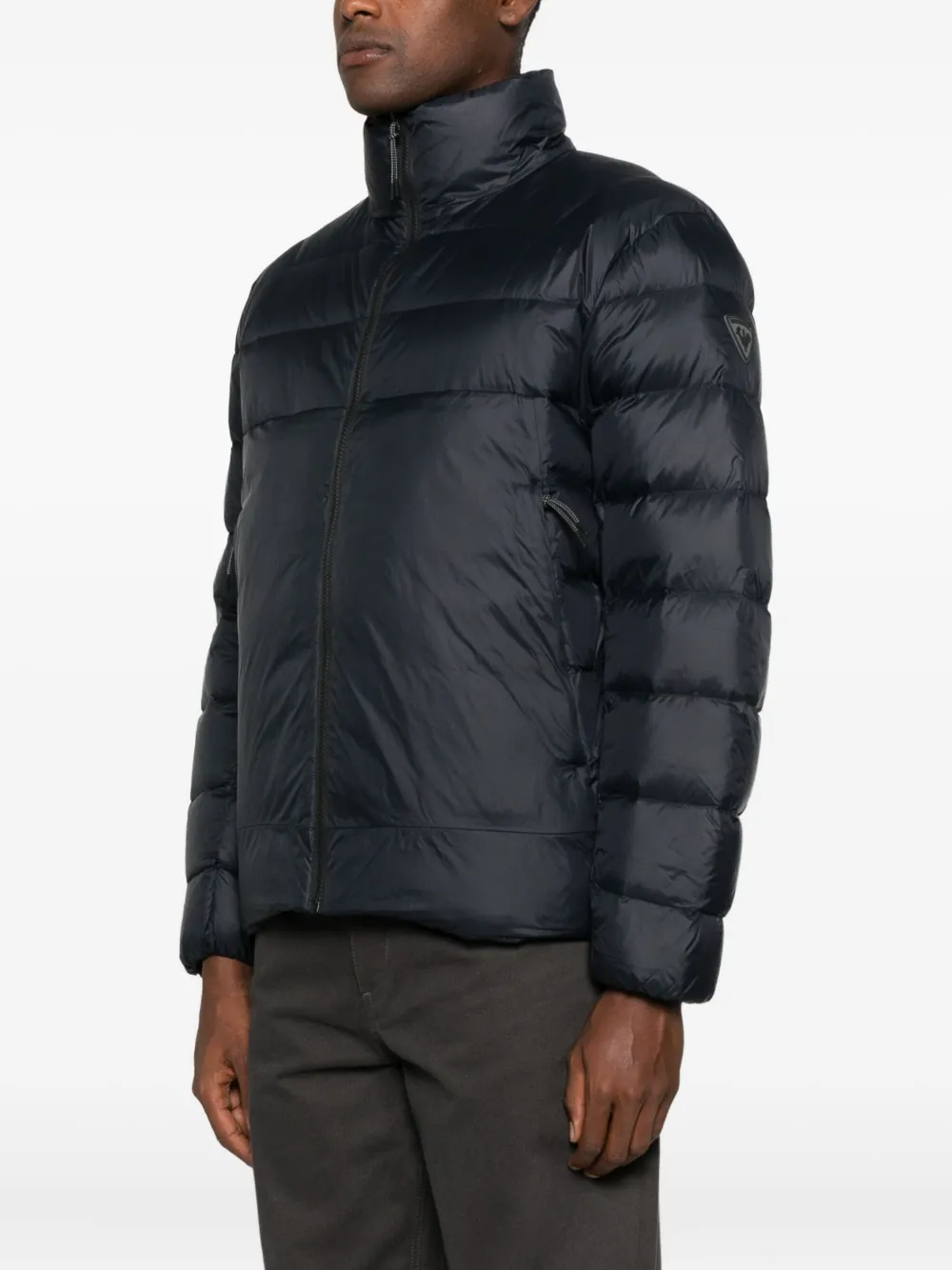 Черная куртка с застежкой-молнией, высоким воротником, боковым карманом на молнии, стегаными длинными рукавами