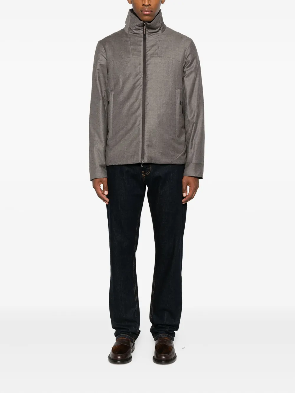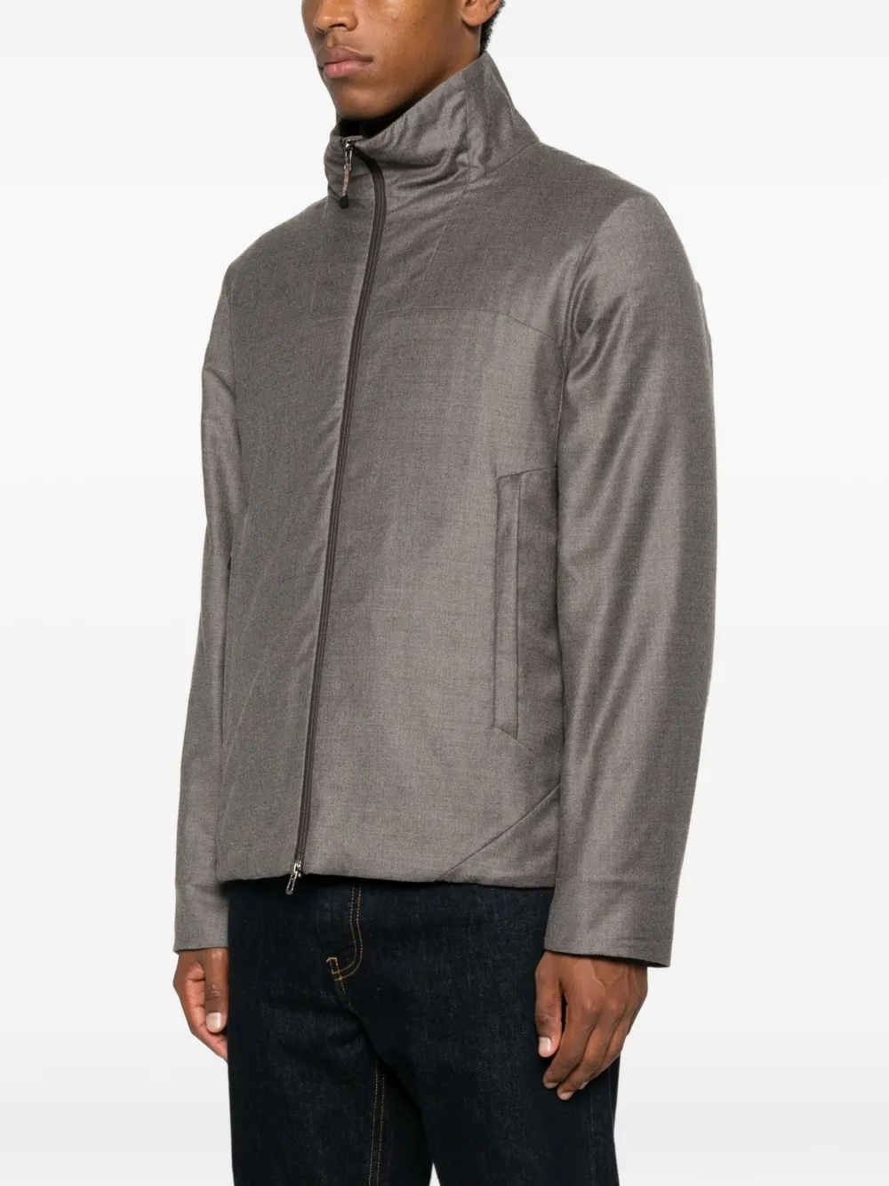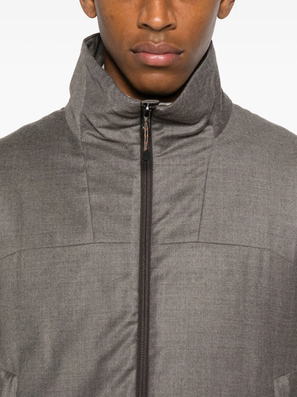 Серый застежка на молнию высокий воротник боковые прорезные карманы многоярусный дизайн длинные рукава