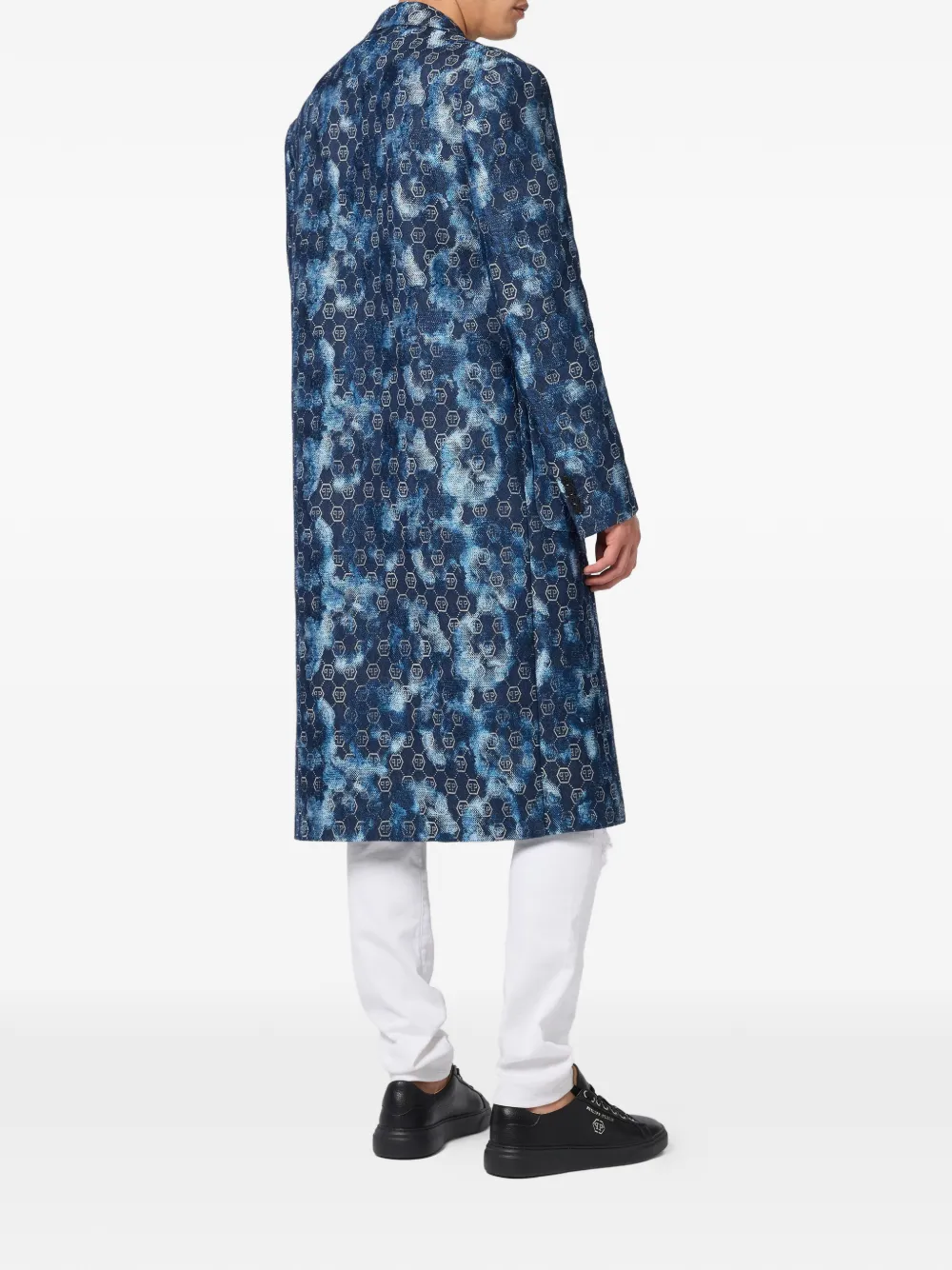 Жаккардовое двубортное пальто Philipp Plein, синий