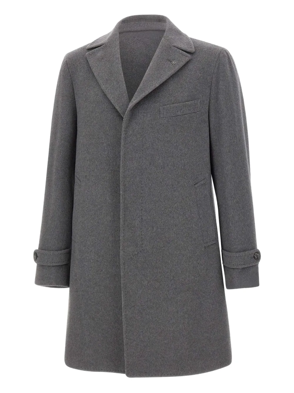 Серый кашемир с манжетами на пуговицах и боковыми карманами