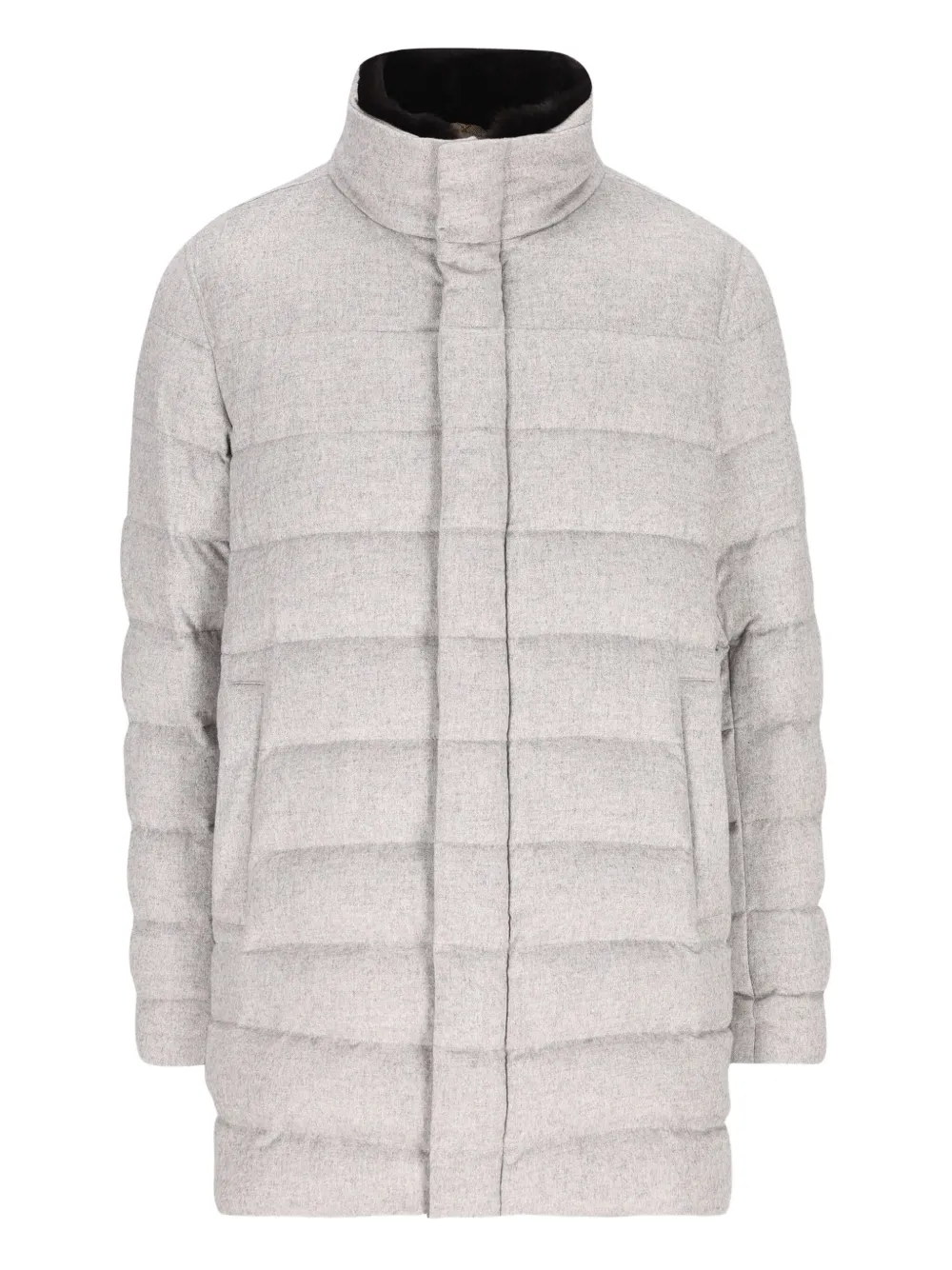 Серый стеганый дизайн высокий воротник застежка-молния боковые карманы