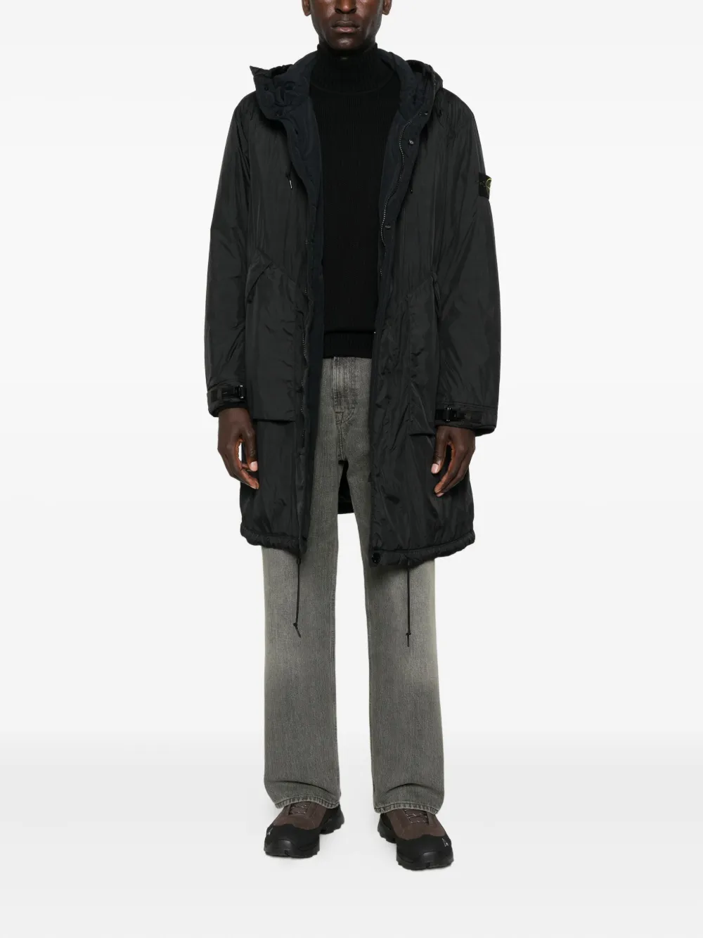 Пальто с капюшоном и кулиской Stone Island, черный 86 147₽