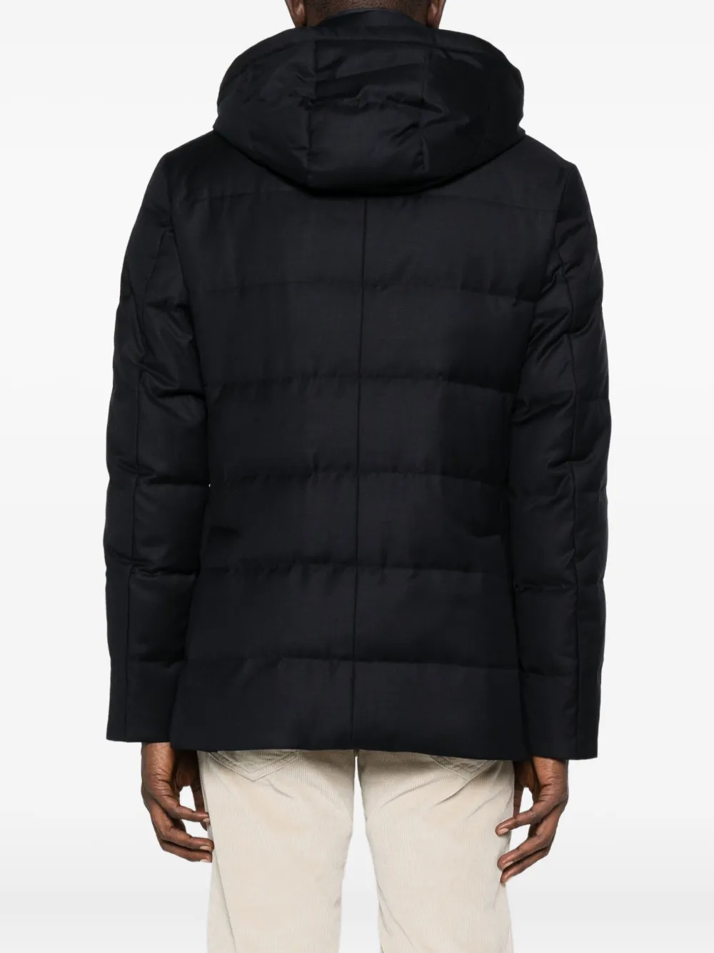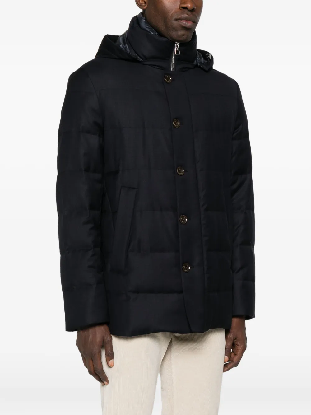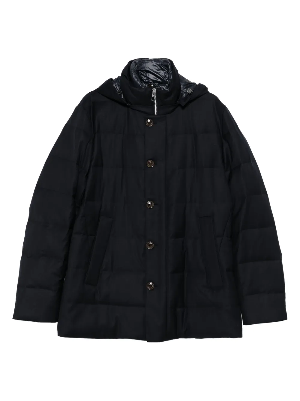 Темно-синий стеганый дизайн капюшон застежка на пуговицы спереди накладные карманы спереди