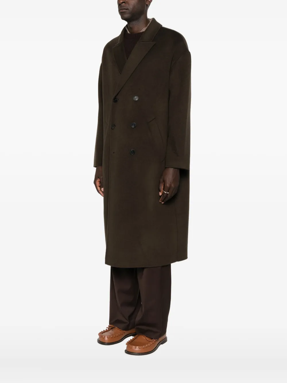 Коричневый двубортная застежка на пуговицы заостренные лацканы длинные рукава боковые прорезные карманы