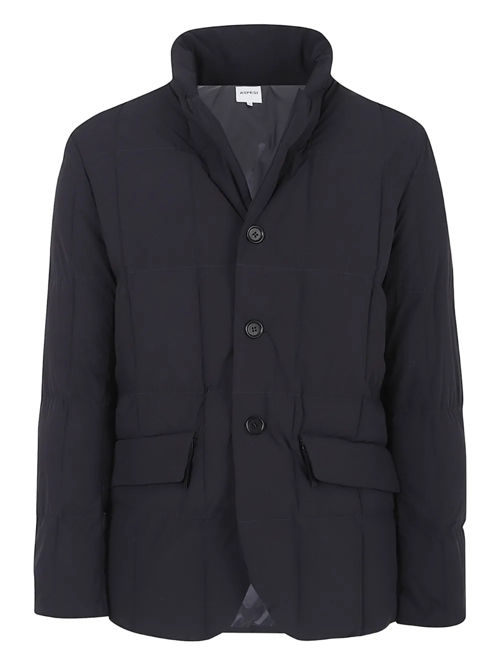 Стеганый пуховик на пуговицах Aspesi, синий 53 534₽