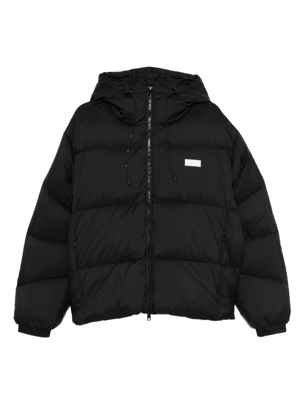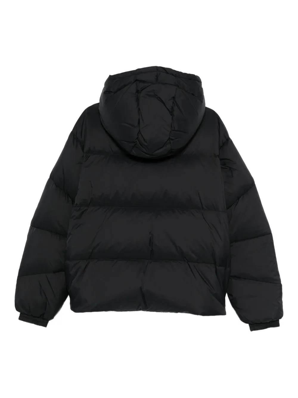 Черный капюшон застежка-молния спереди нашивка с логотипом стеганый дизайн короткий свободный крой