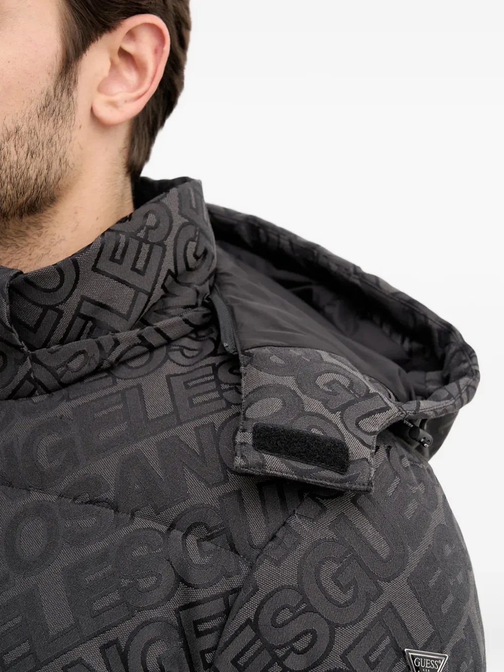 Пуховик с логотипом Guess Usa, серый