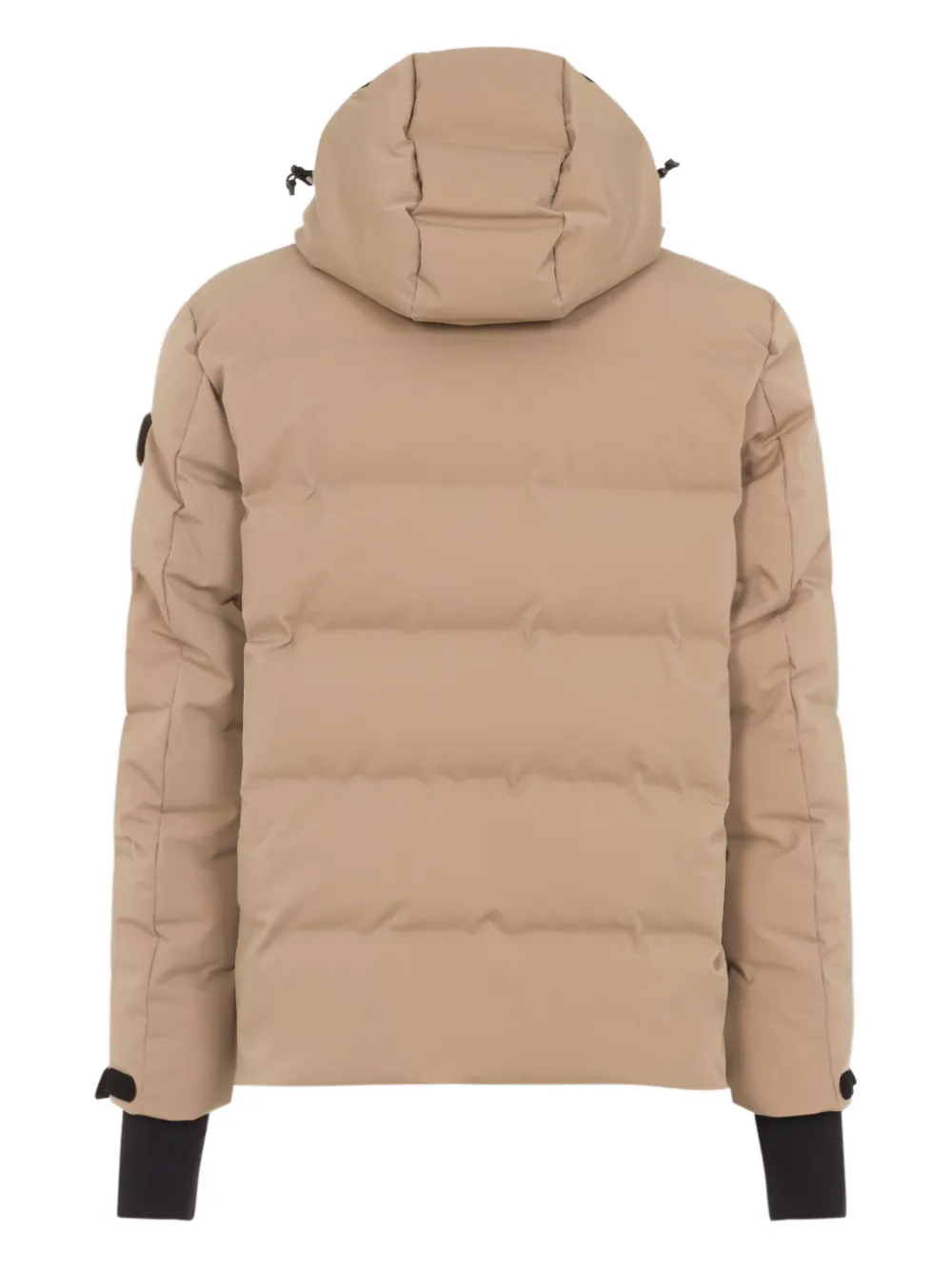 Кремово-белая пуховая куртка с капюшоном, застежкой-молнией, боковыми карманами и эластичными манжетами
