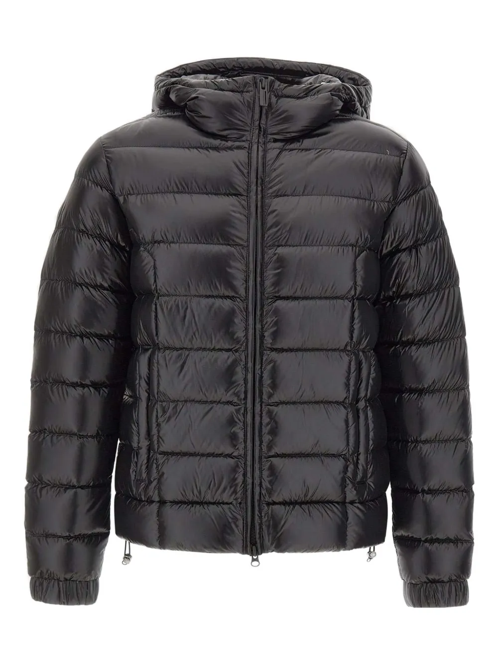 Черный цвет, стеганый дизайн, застежка на молнии, эластичные манжеты, кулиска на подоле