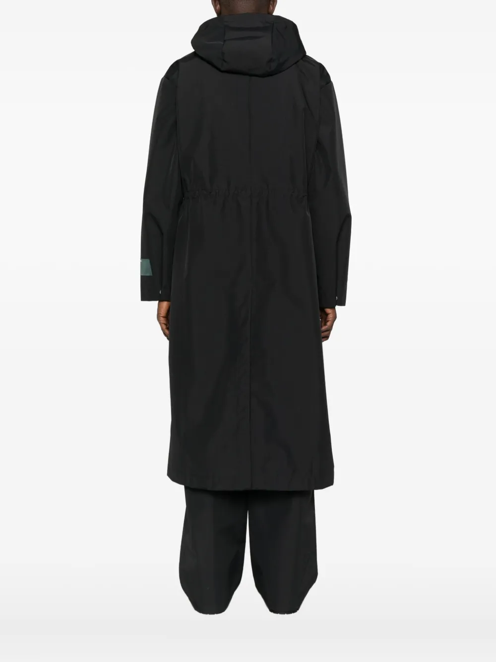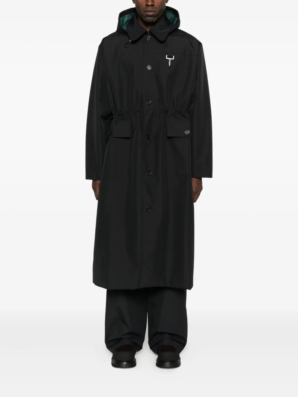 Черный шнурок на талии застежка на пуговицы накладные карманы с клапанами металлическая деталь-крючок капюшон со шнурком