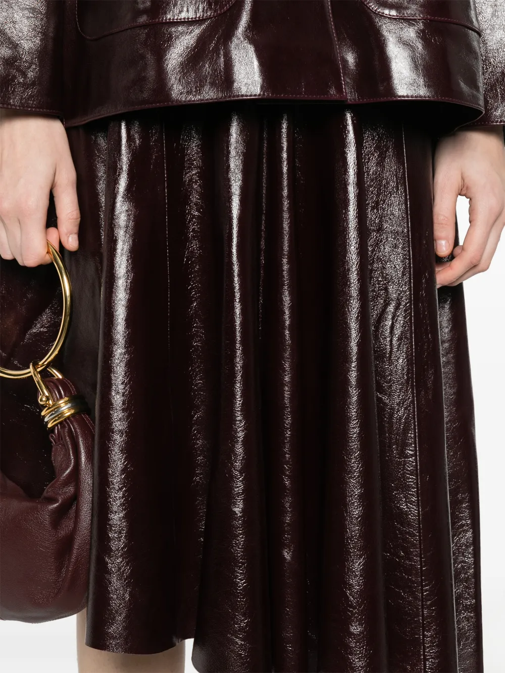 Бордовая юбка А-силуэта с панельным дизайном и завышенной талией