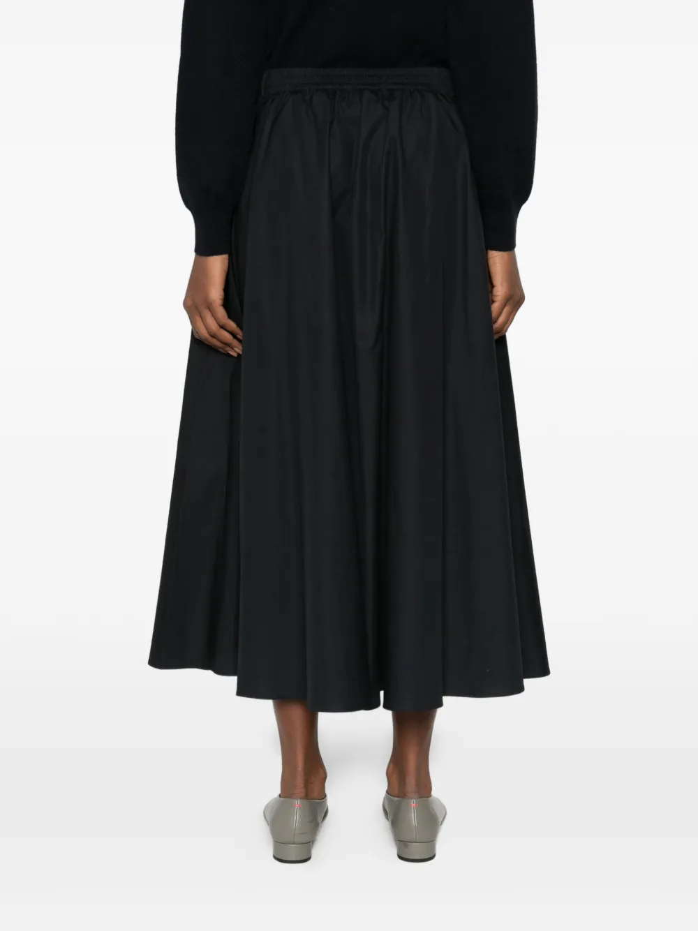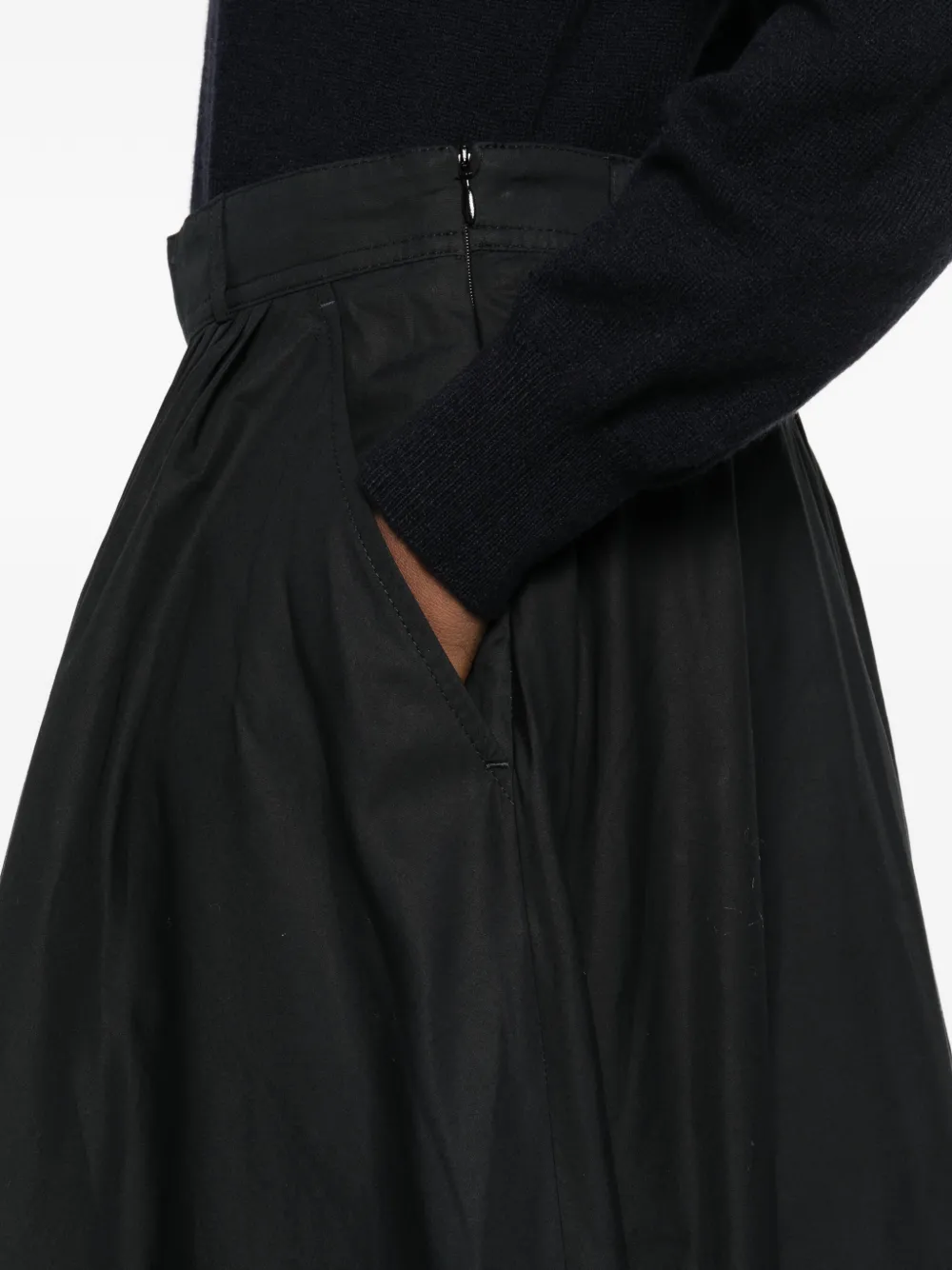 Черная юбка А-силуэта с панельным дизайном, боковыми карманами в швах, задней застежкой-молнией и завышенной талией