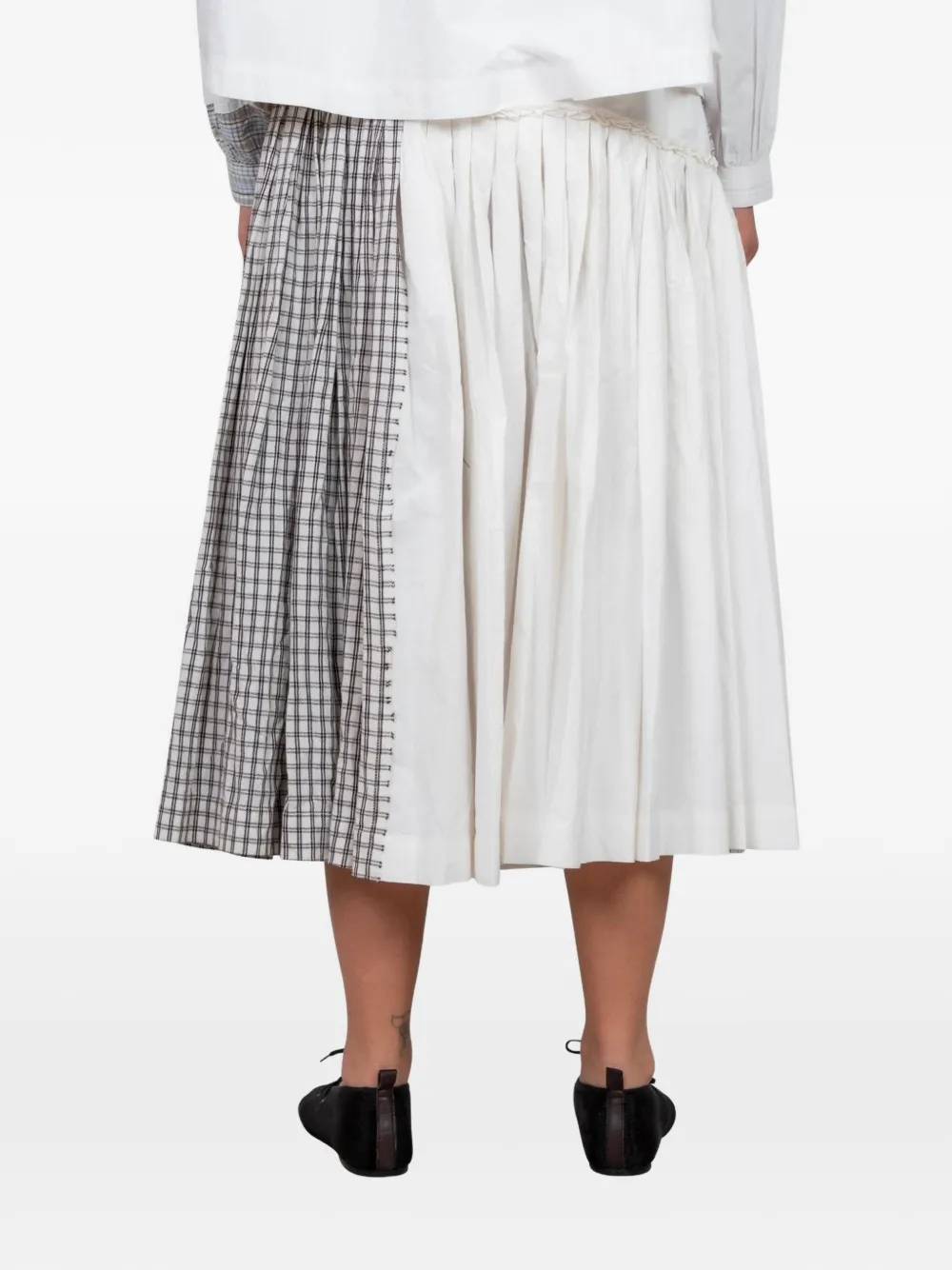 Белый лоскутный узор, плиссированный дизайн, собранные детали, многослойный дизайн, средняя длина