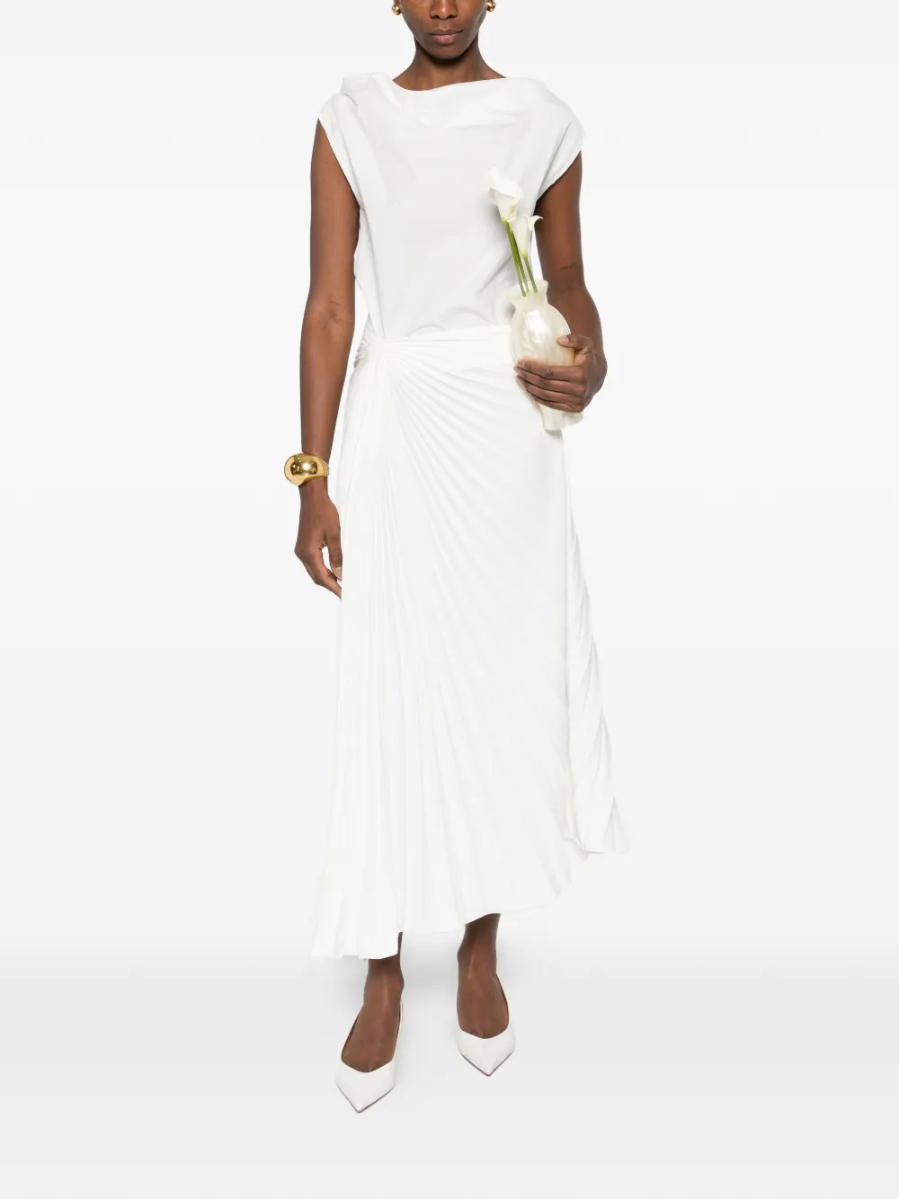 Белый плиссированный дизайн с асимметричным подолом