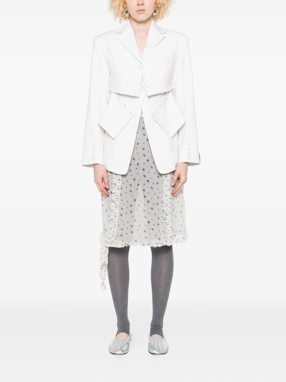 Молочно-белый оборчатая отделка асимметричный подол