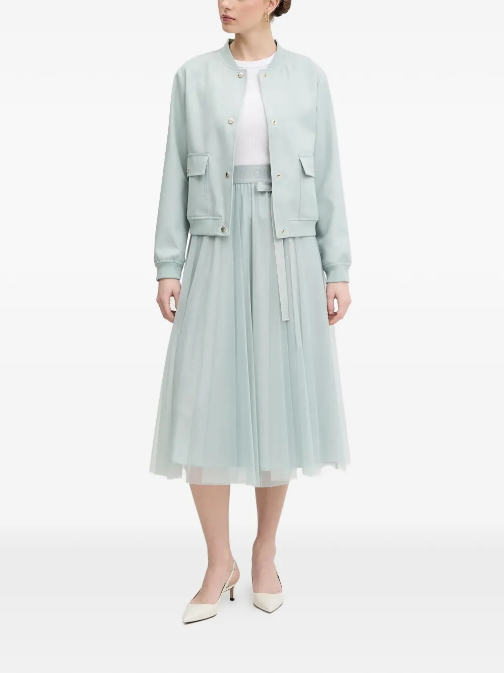 Светло-голубая тюлевая накладка с блестящими деталями, лентой и эластичным поясом