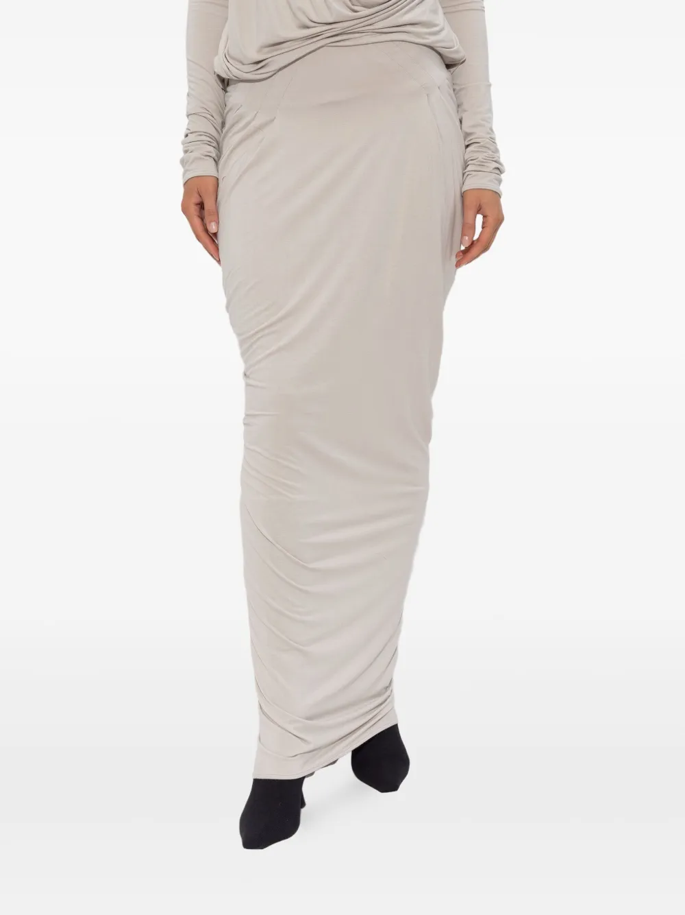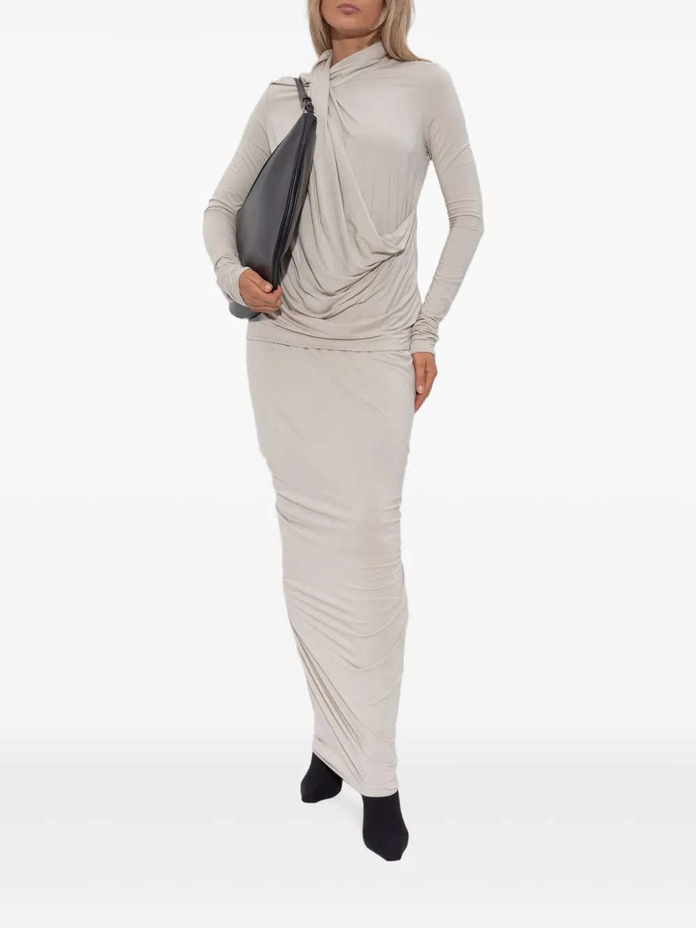 Светло-бежевый трикотажная ткань драпированный дизайн детали со сборками макси-длина