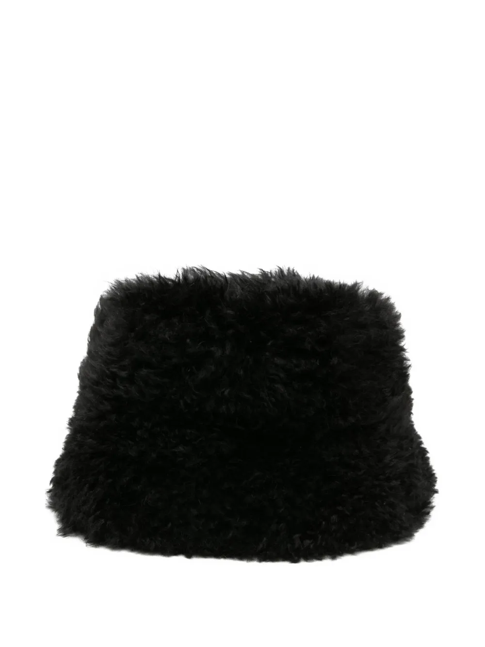 Черная шляпа-ведро из овчины с широкими полями, низкой тульей и пушистой текстурой