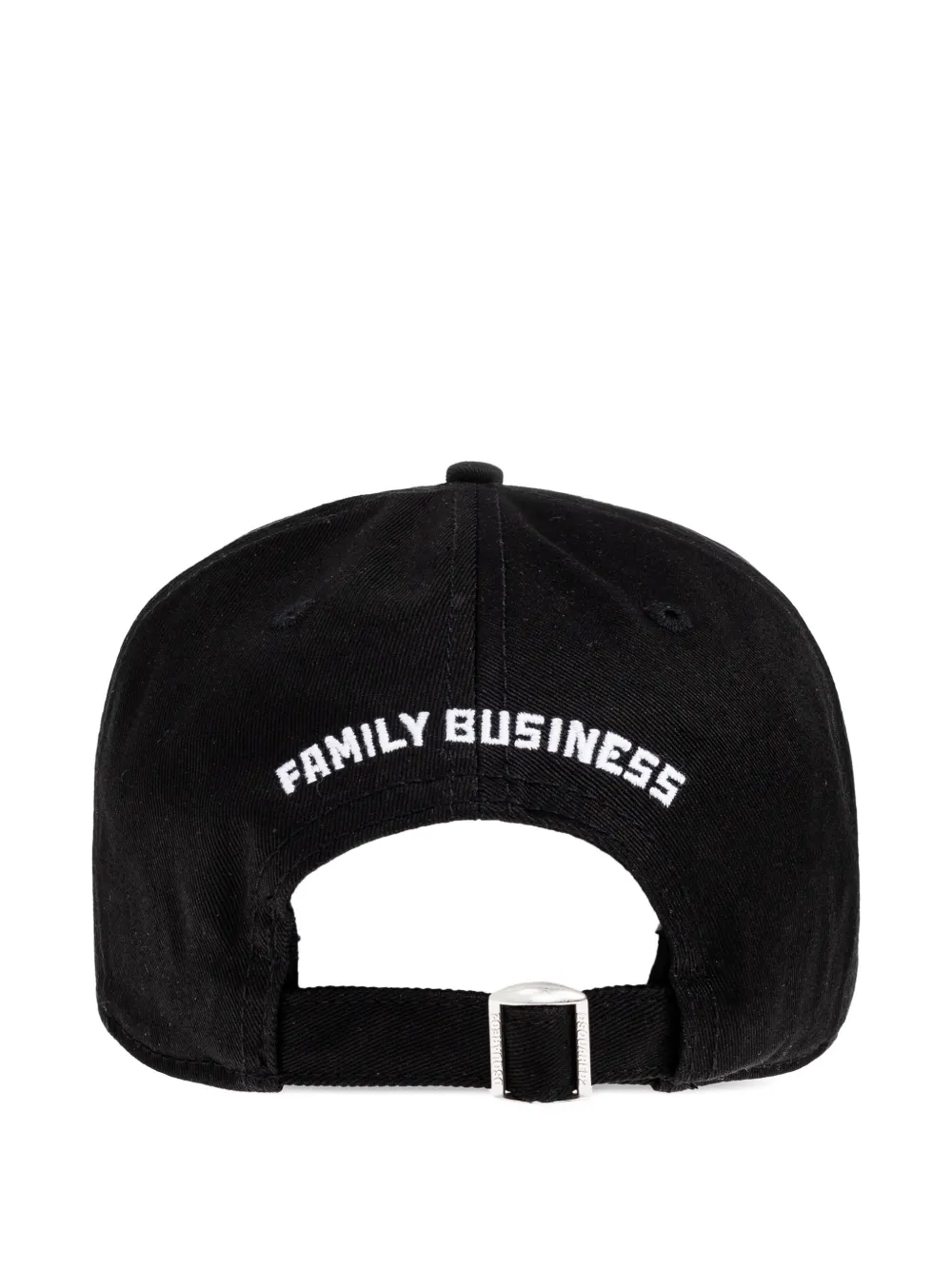 Черный цвет, вышитый логотип, потертые детали, регулируемый ремешок, надпись сзади