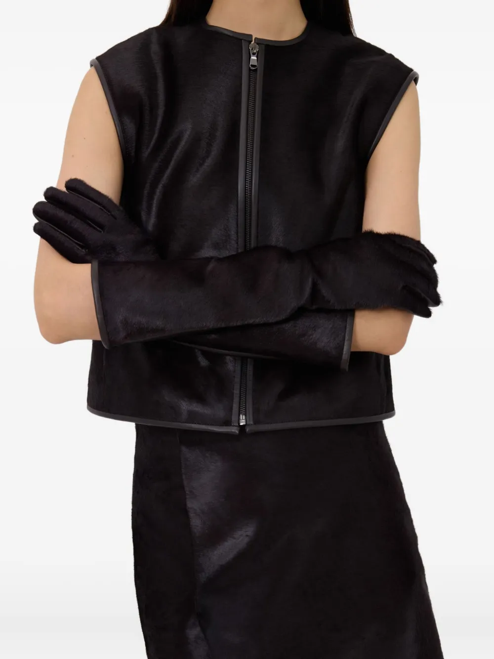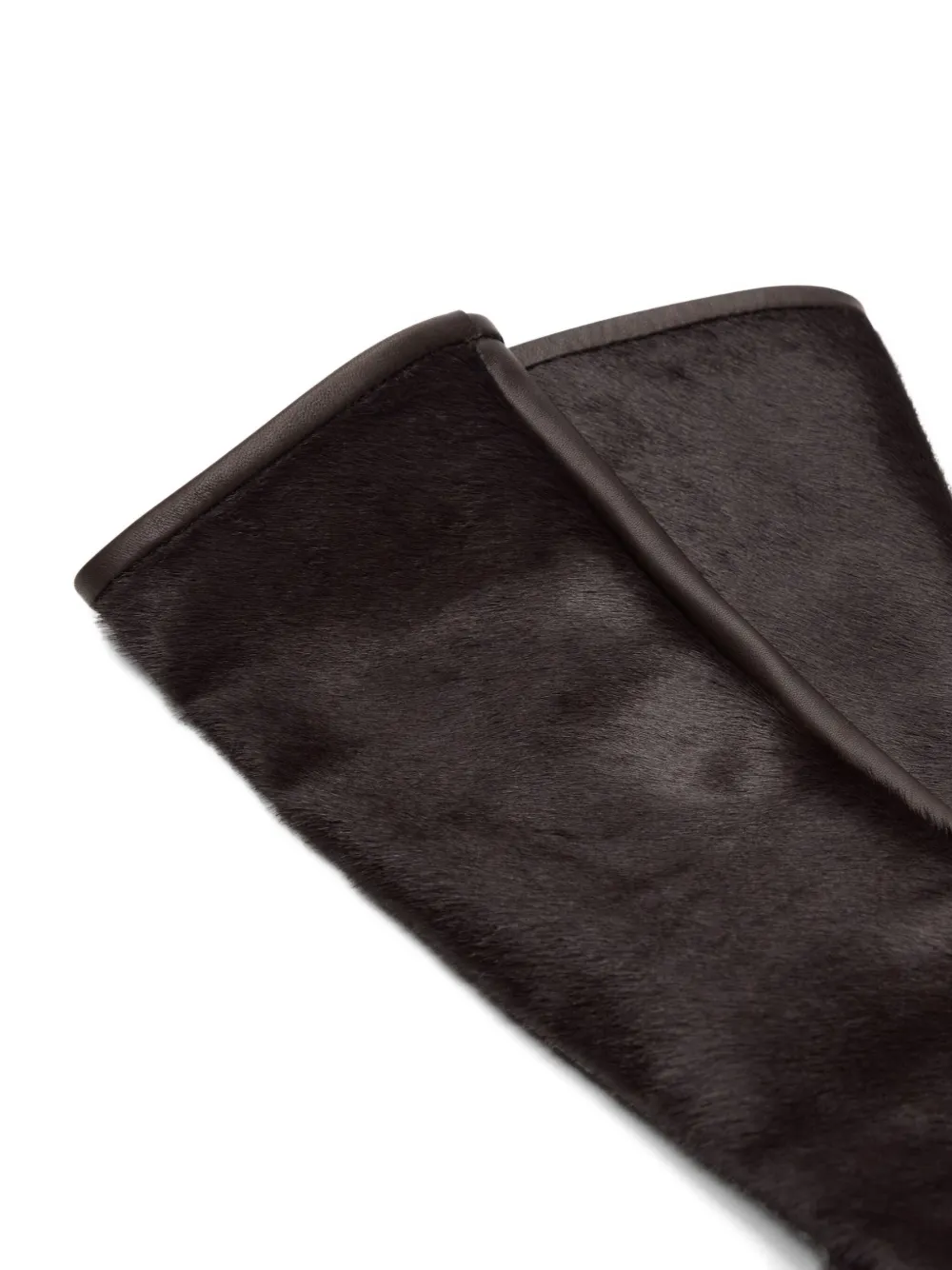 Коричневые кожа длина до локтя кожаная отделка пятипалый дизайн