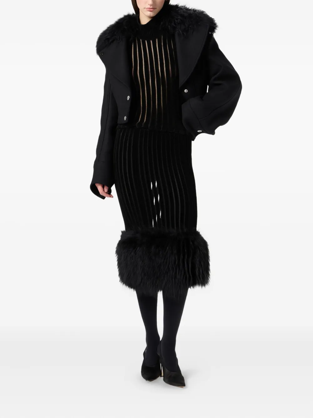 Топ в рубчик с высоким воротником Blumarine, черный 57 815₽