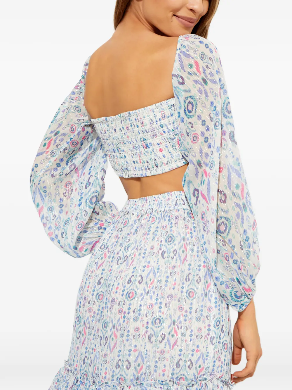 Топ с принтом и пышными рукавами Rococo Sand, белый