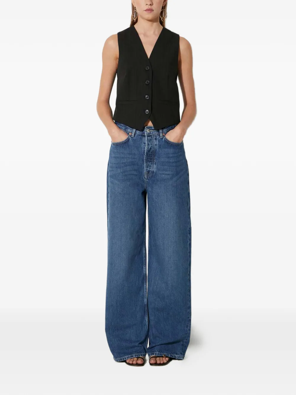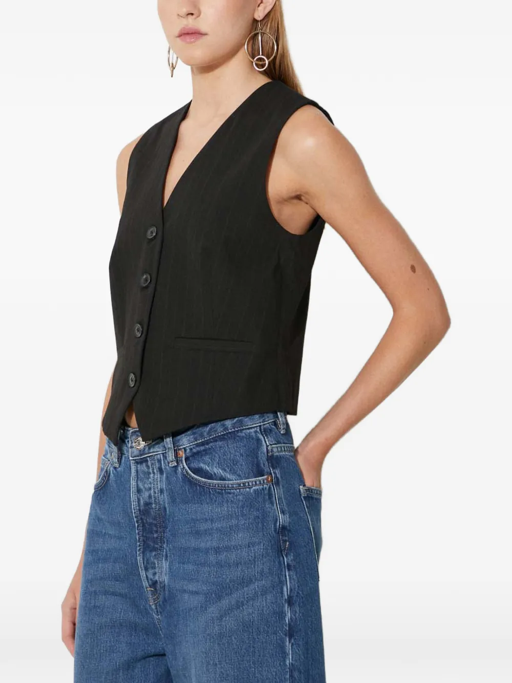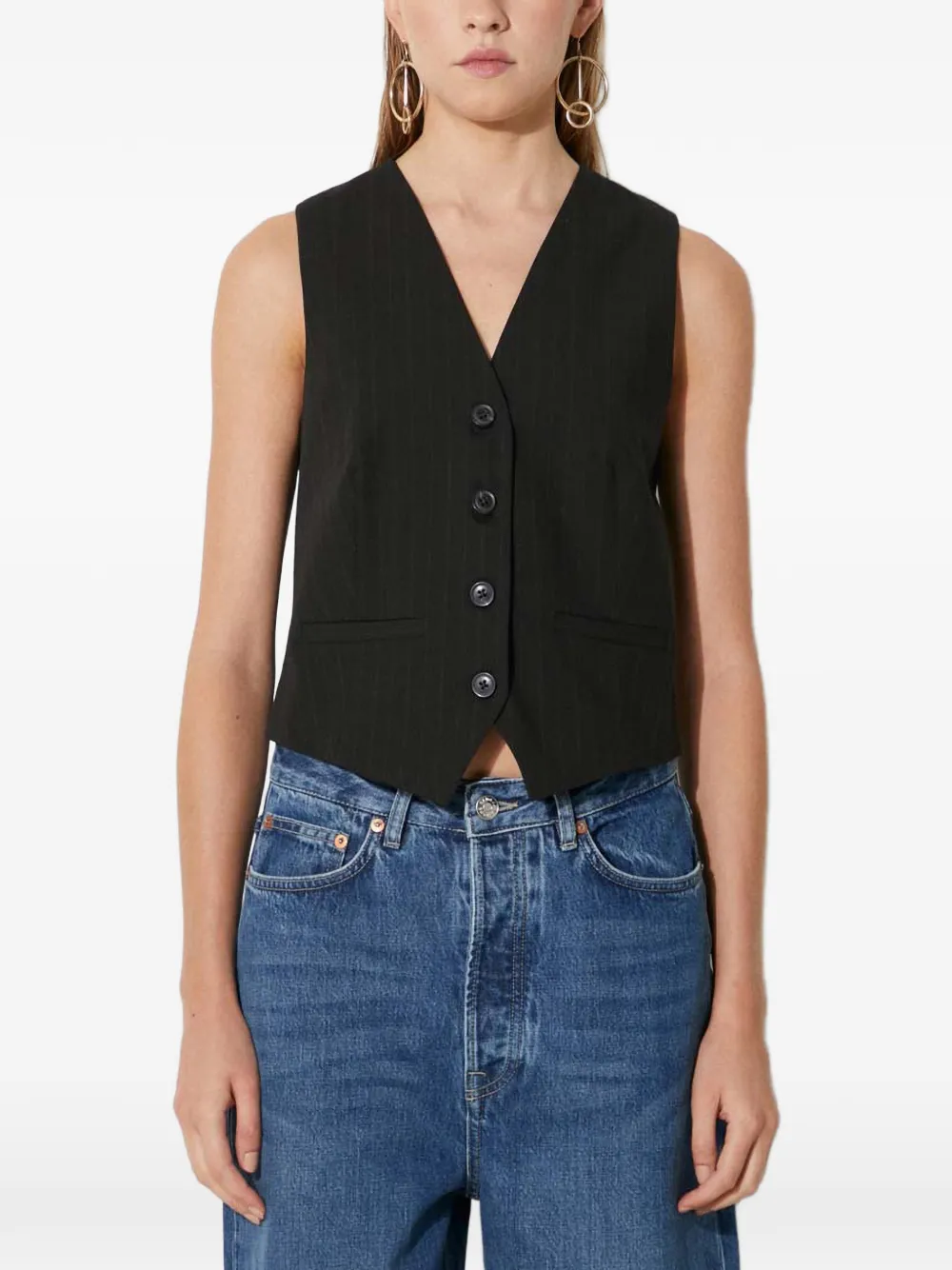 Топ Saramona в полоску с пуговицами Samsoe Samsoe, черный