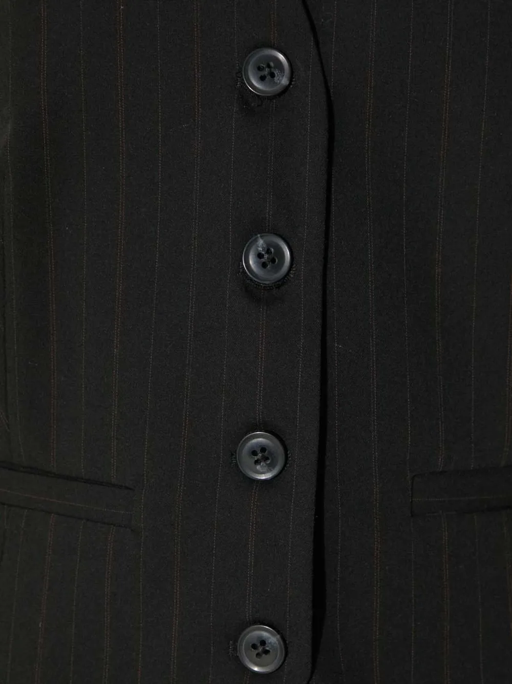 Черный с принтом в виде полос, V-образный вырез, застежка на пуговицы, прорезной карман