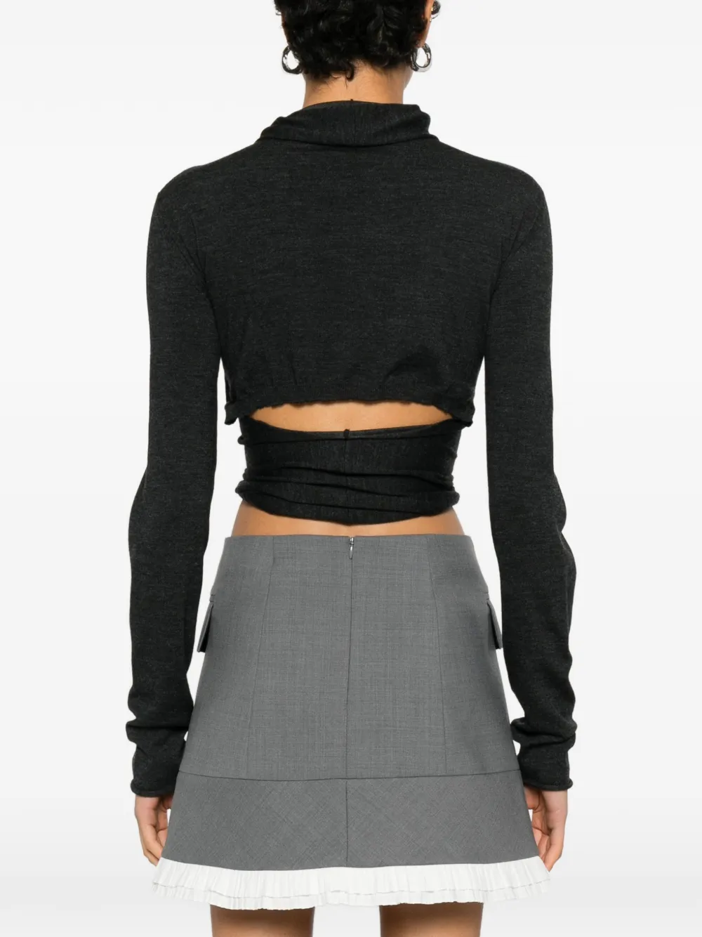 Металлическо-серый топ с драпировкой, длинными рукавами и асимметричным подолом