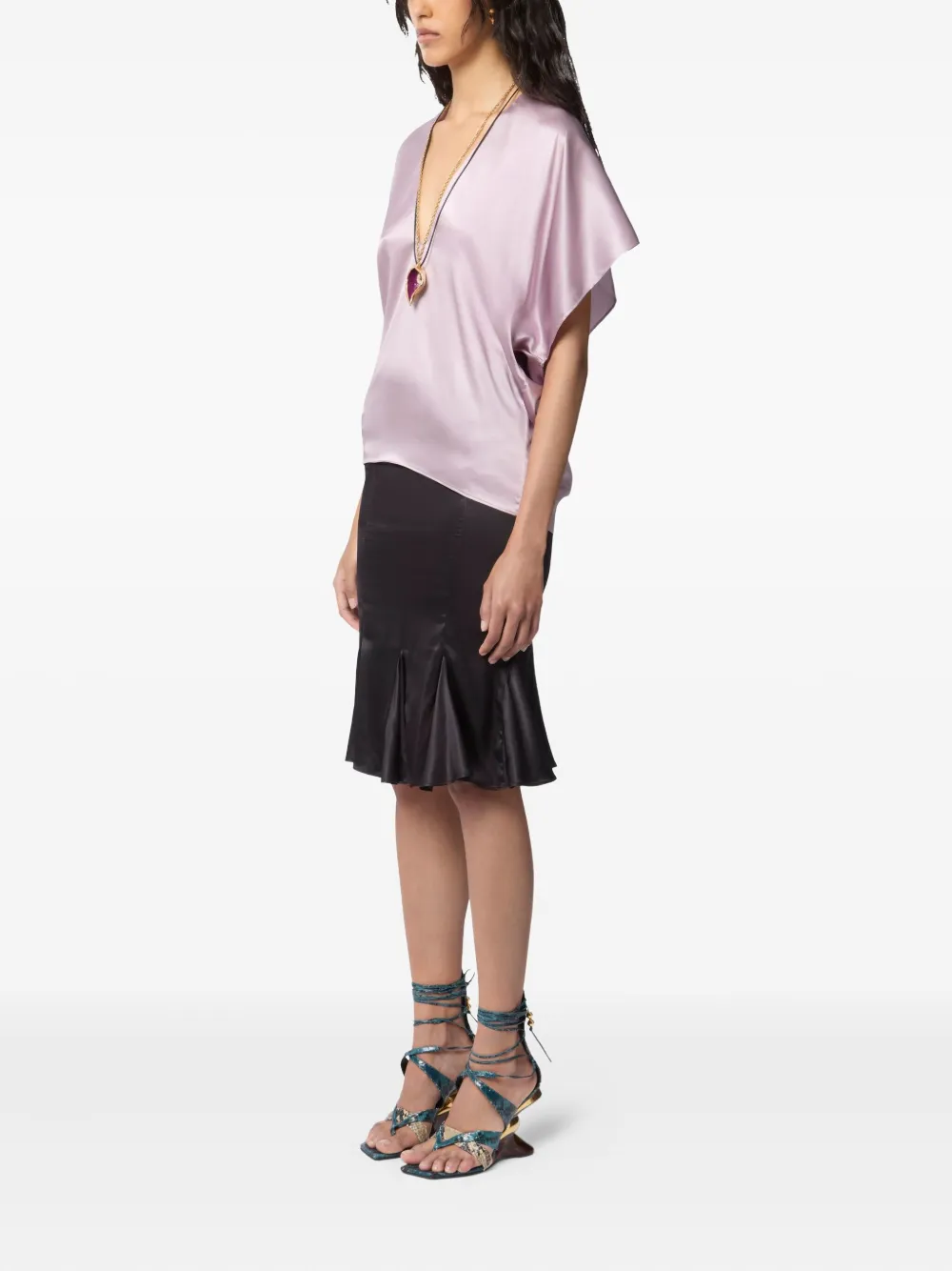 Шелковый топ с V-образным вырезом Nina Ricci, розовый