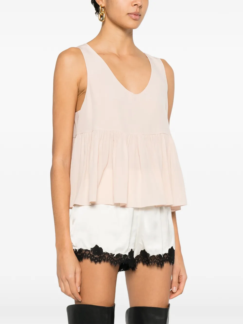 Розовый шелковый топ с круглым вырезом, без рукавов, со сборкой и баской по низу