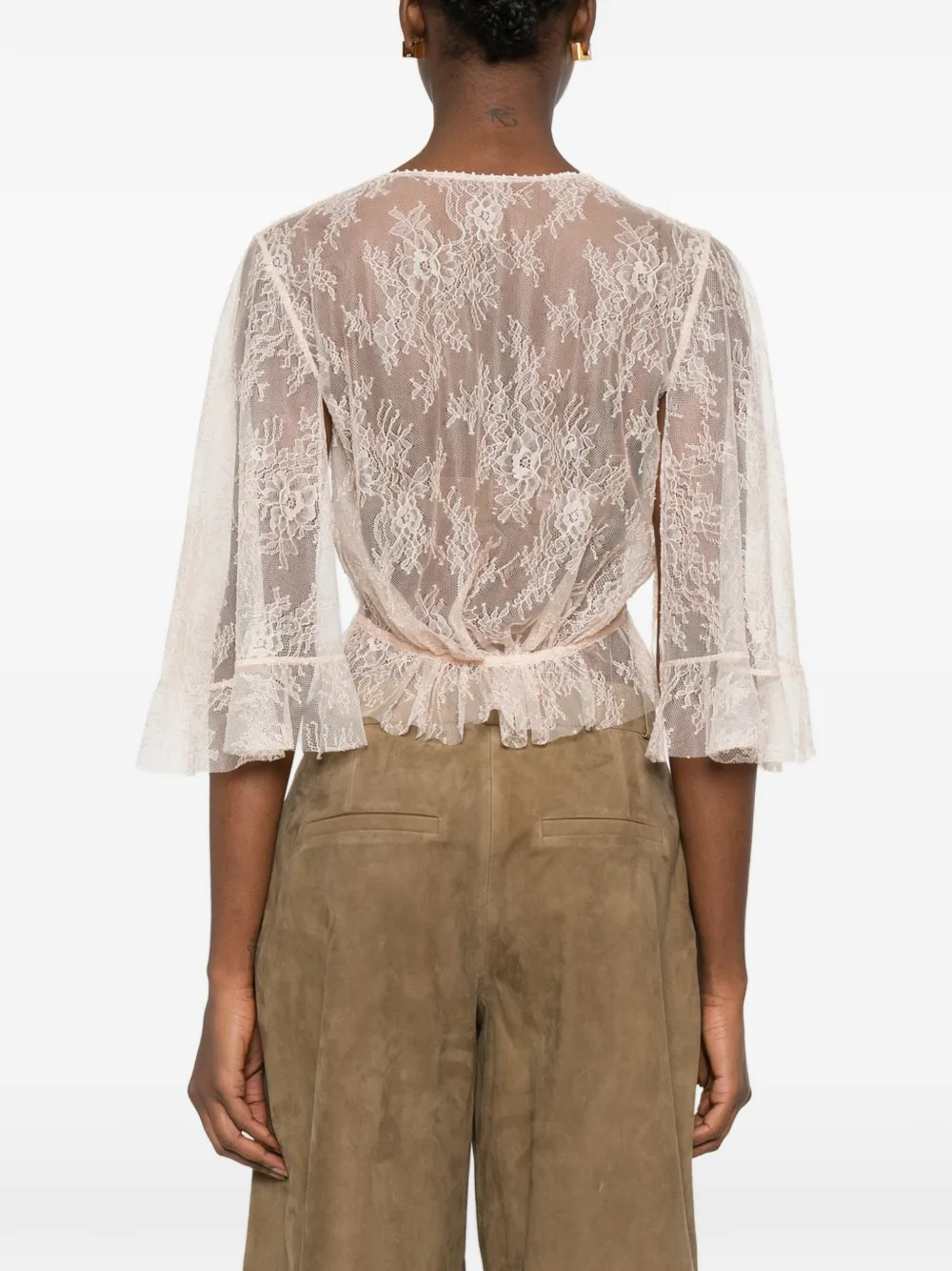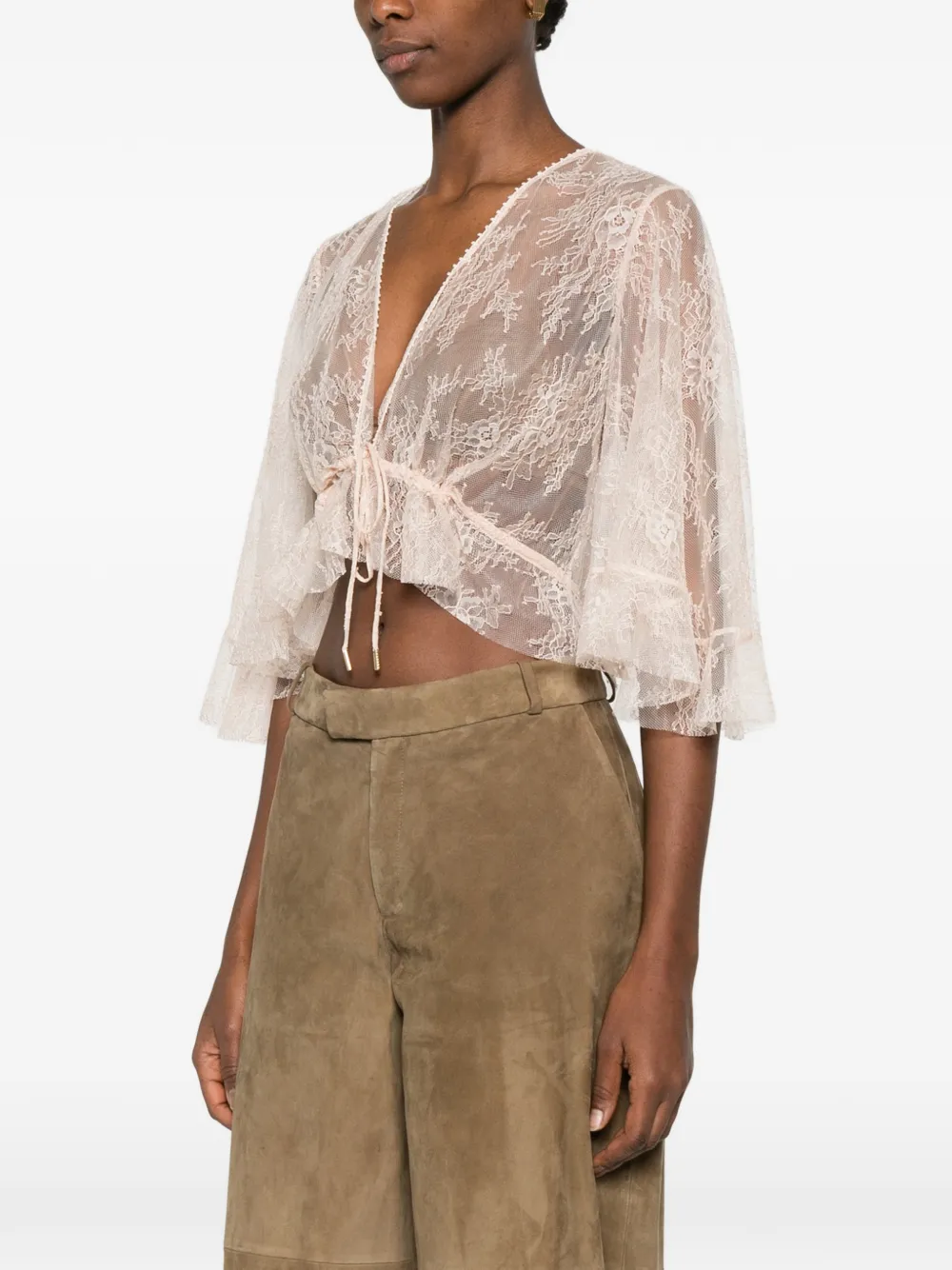 Кружевной топ с рюшами Alberta Ferretti, розовый