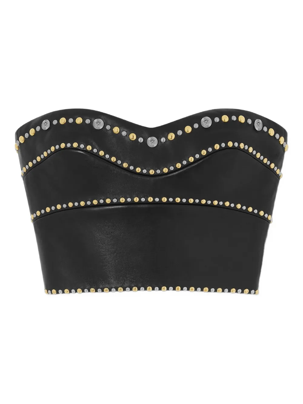 Кожаный топ с заклепками Versace, черный