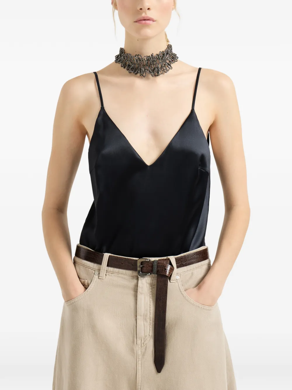 Топ с V-образным вырезом Brunello Cucinelli, черный