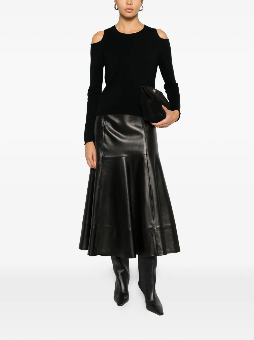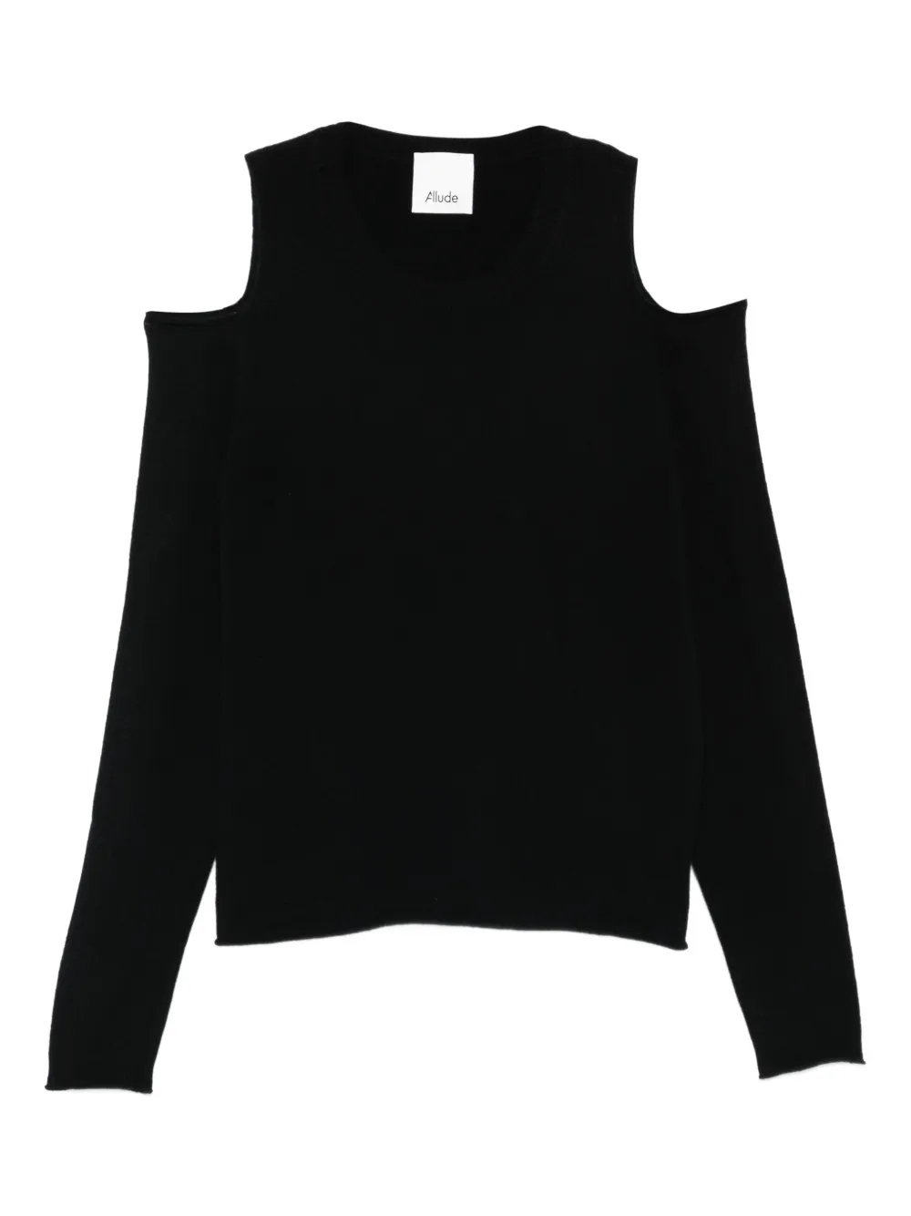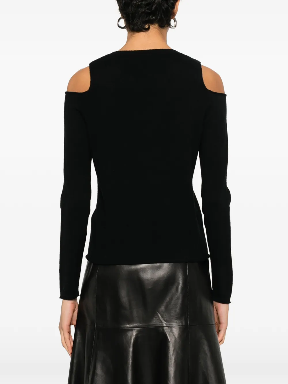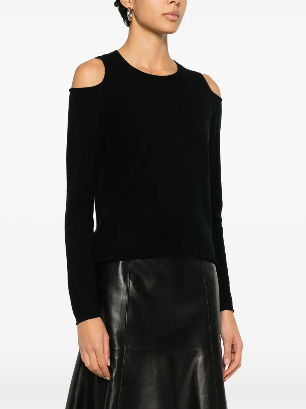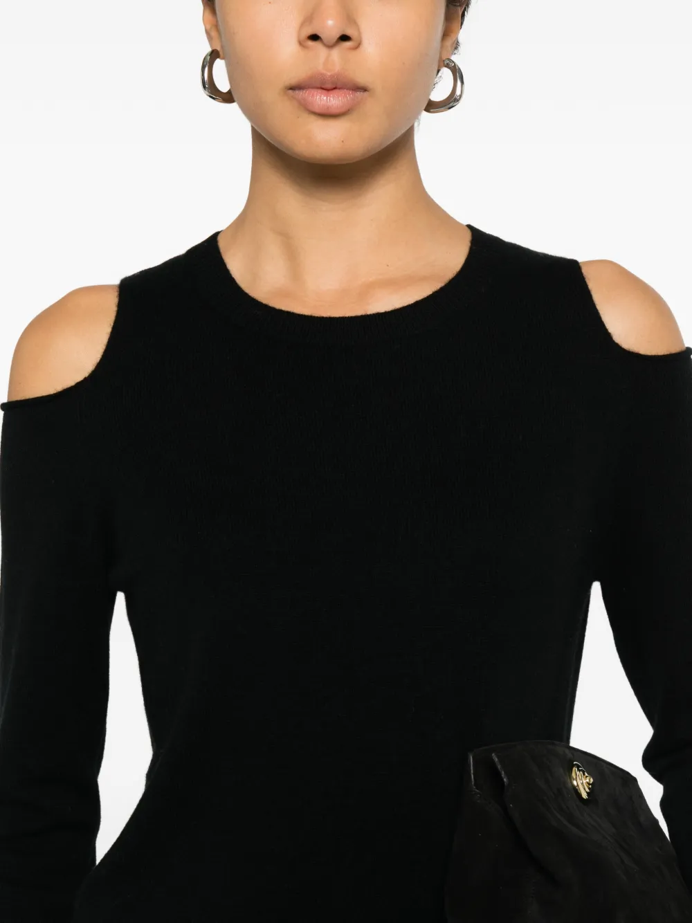 Черный свитер с круглым вырезом, длинными рукавами и вырезами на плечах