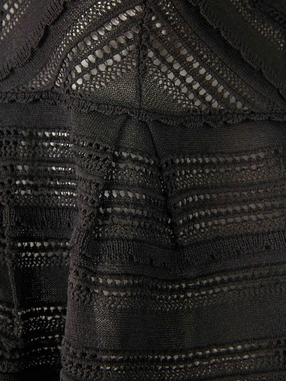 Черное кружевное изделие с отделкой зубчиками, тонкие бретели, V-образный вырез