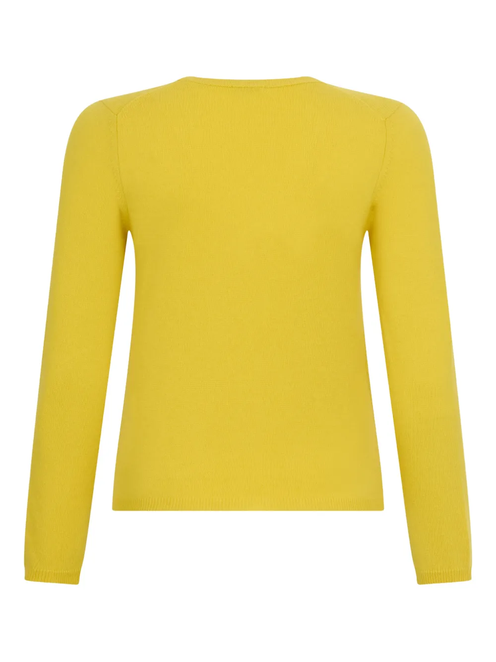 Желтый пуловер с V-образным вырезом и длинными рукавами