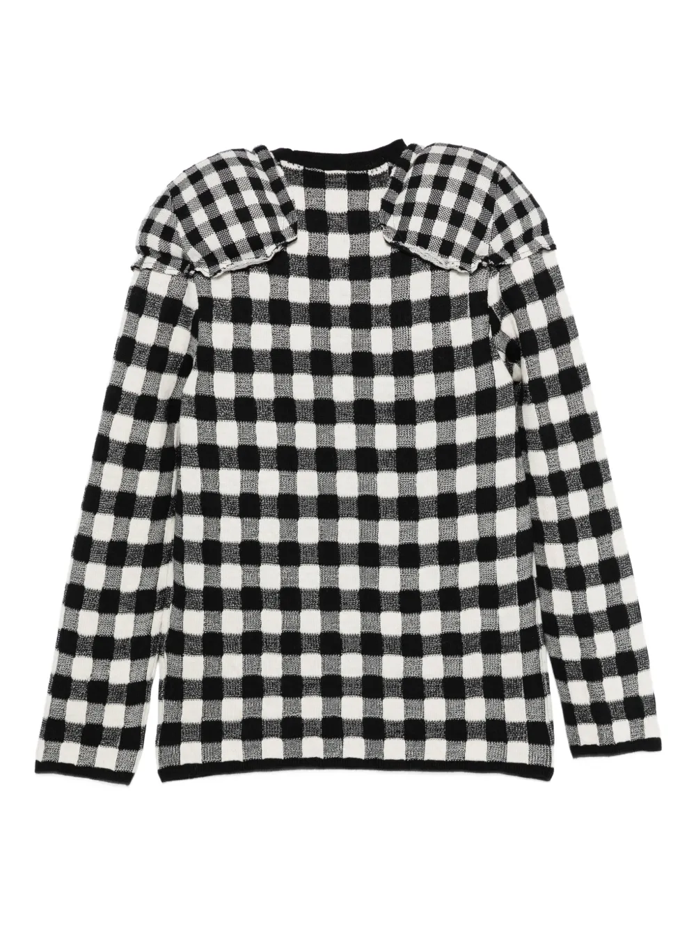 Черно-белый принт в клетку «гингем» плечевые накладки длинные рукава круглый вырез