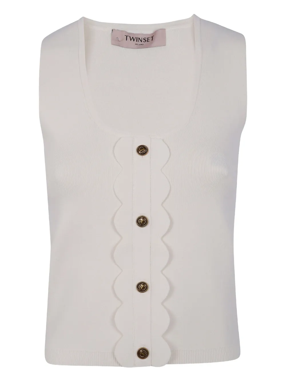 Рифленый топ с фигурной отделкой Twinset, белый 15 846₽