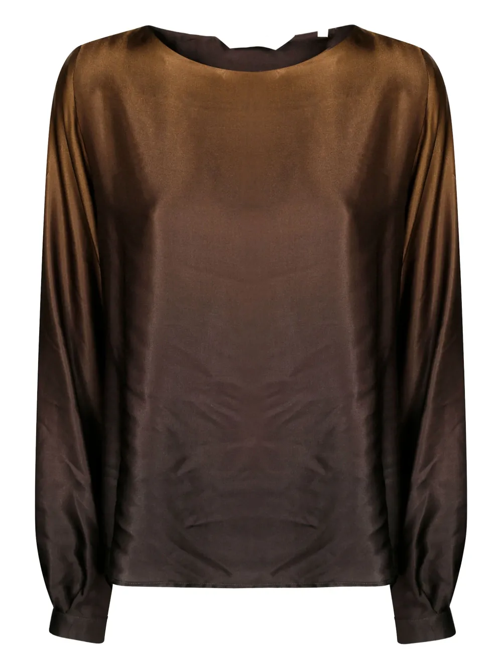 Коричневый, длинные рукава, манжеты на пуговицах, вырез лодочкой