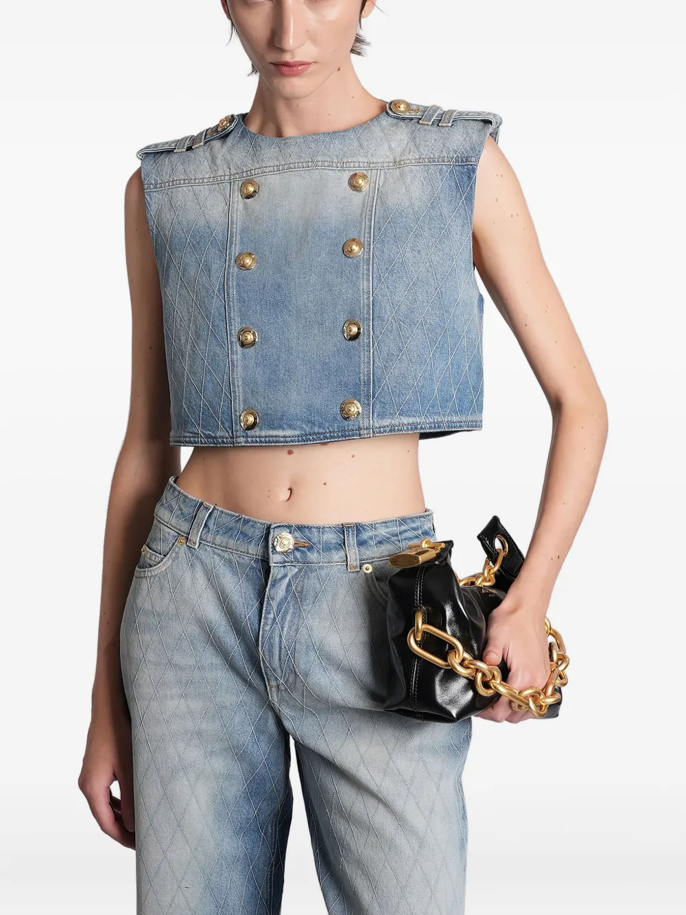 Стеганый топ на пуговицах Balmain, синий 94 676₽