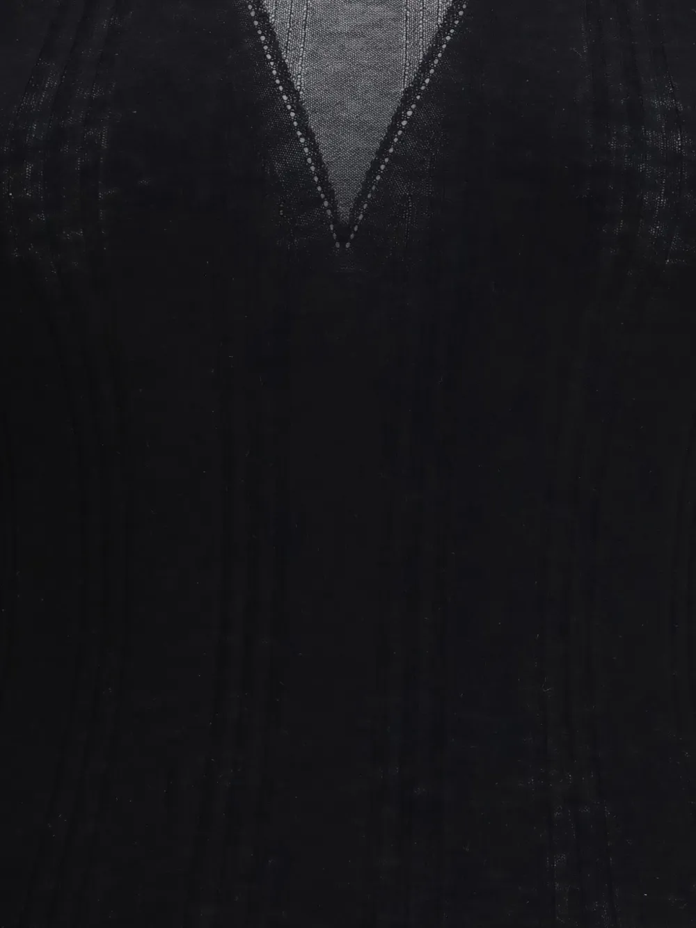 Черный полупрозрачный вязаный топ в рубчик с круглым вырезом и длинными рукавами