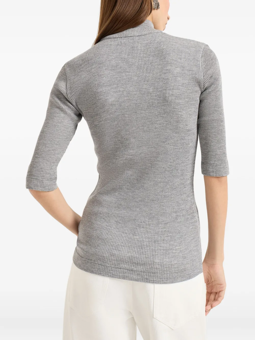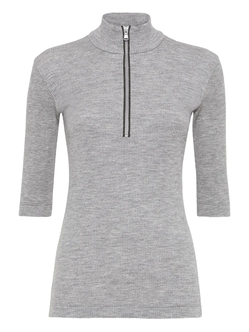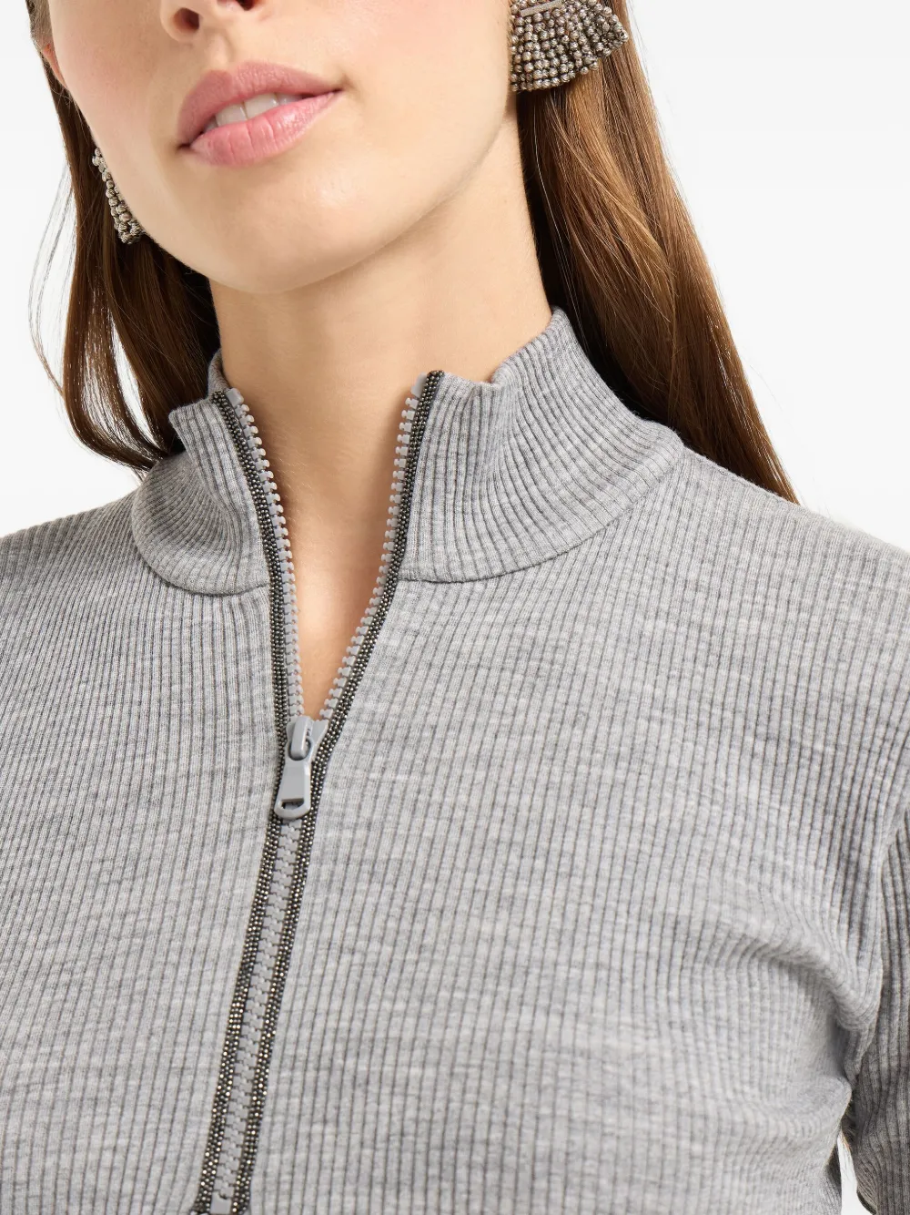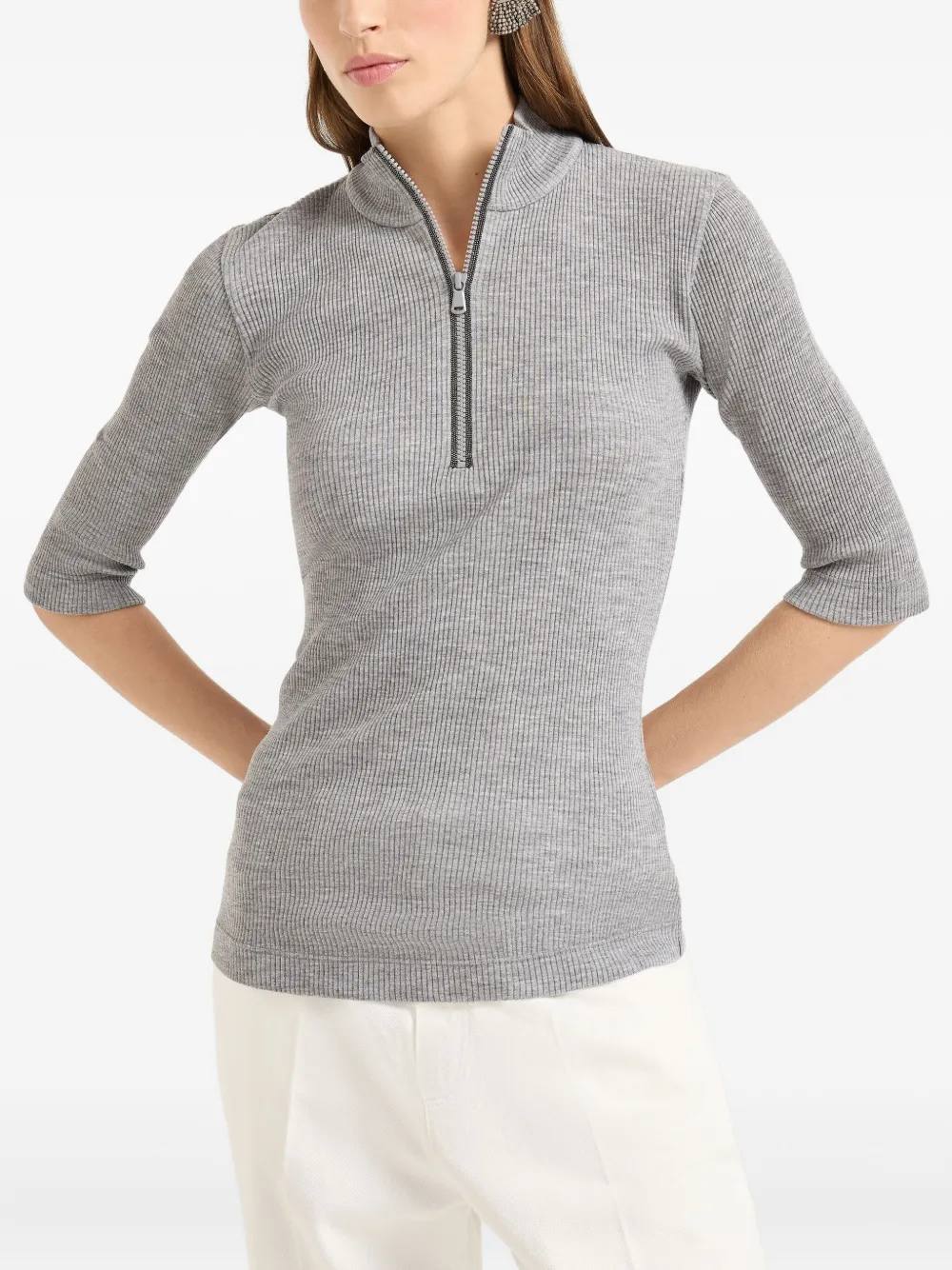Топ в рубчик с воротником на молнии Brunello Cucinelli, серый