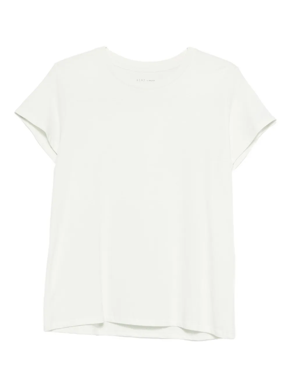 Белый хлопок, короткие рукава, круглый вырез, прямой низ