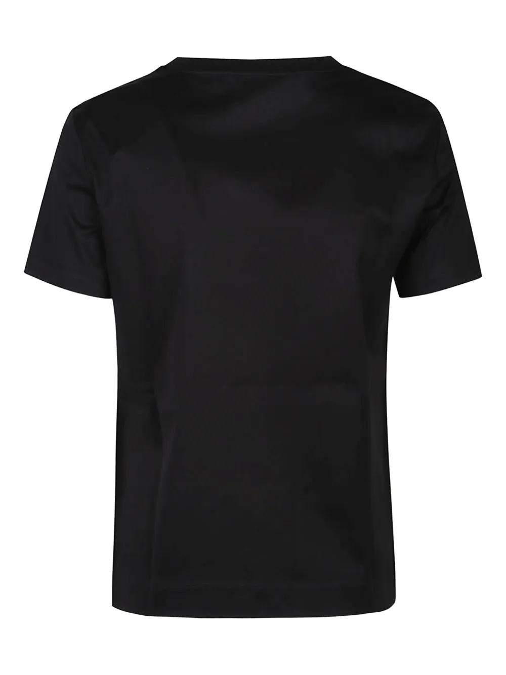 Черная хлопковая футболка с короткими рукавами, круглым вырезом, логотипом сбоку и прямым подолом