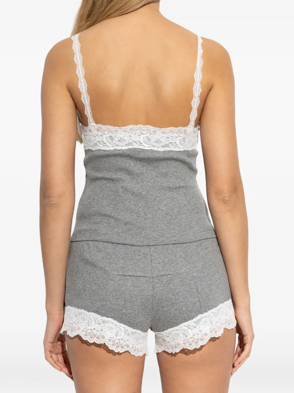 Серый меланж с кружевной отделкой, V-образным вырезом и тонкими бретельками