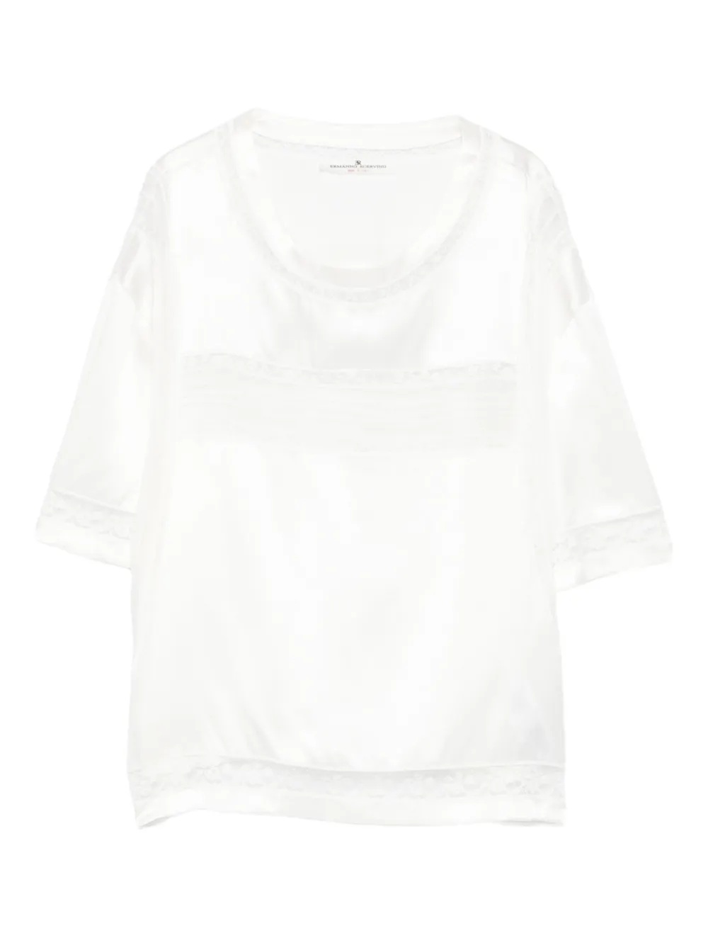 Шелковый топ с кружевной отделкой Ermanno Scervino, белый 120 952₽