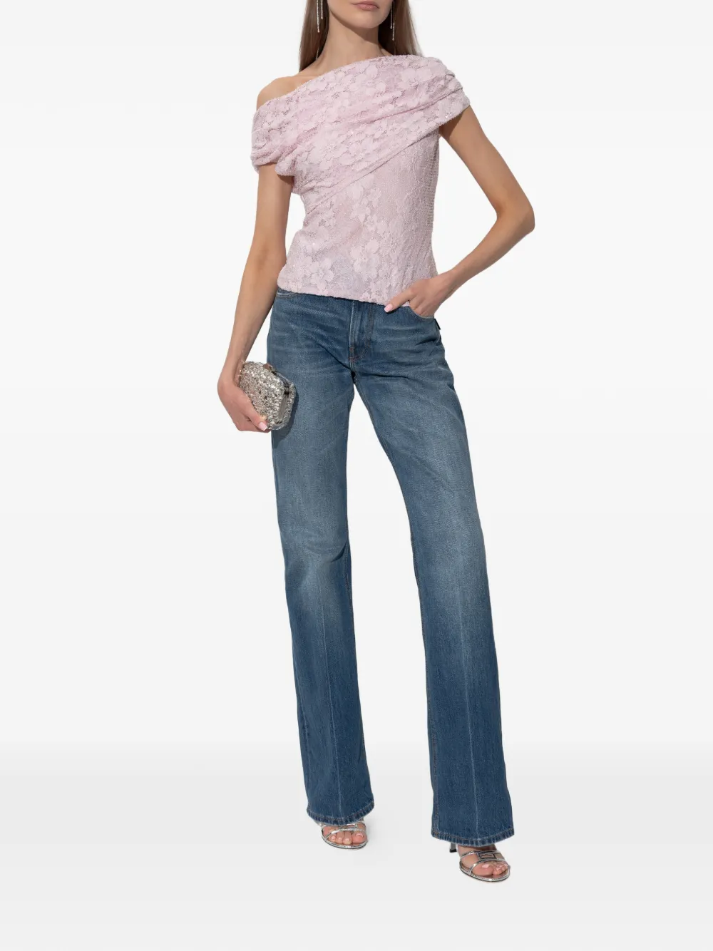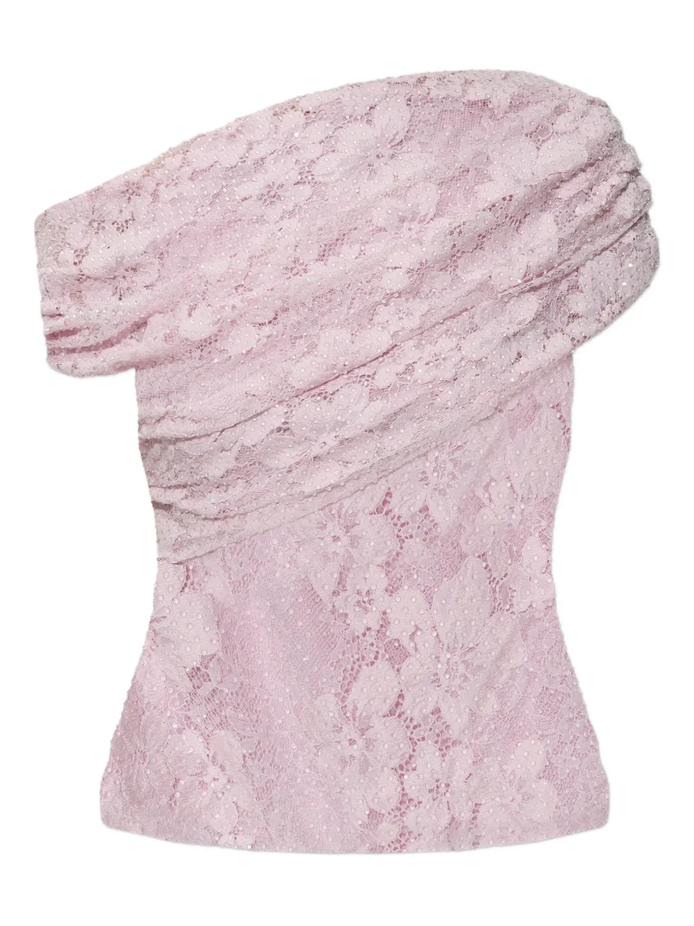 Топ с кружевом и драпировкой Self-Portrait, розовый