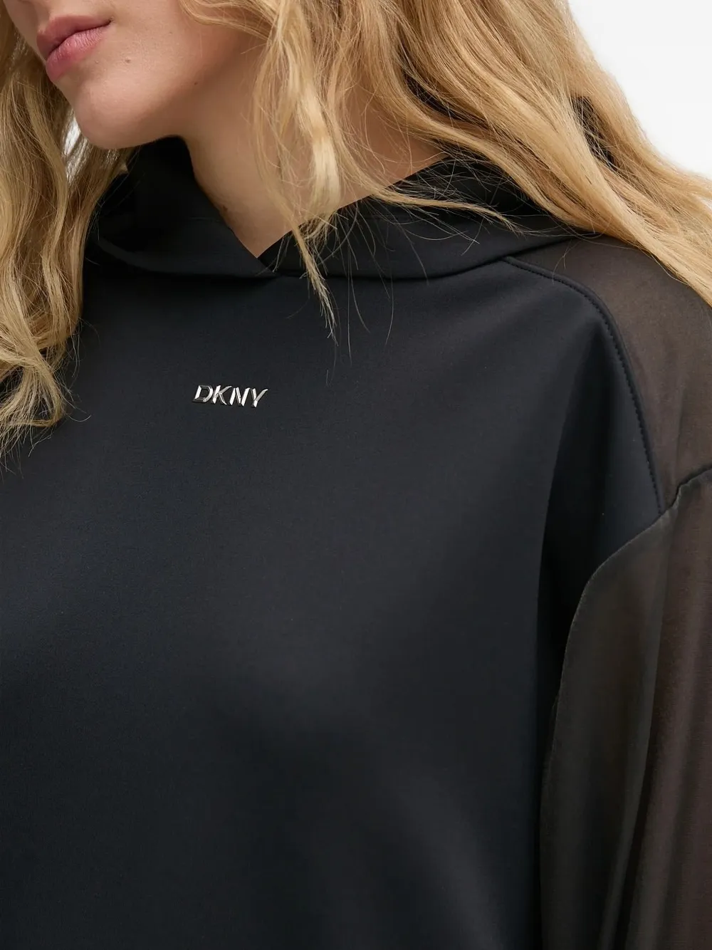 Топ с прозрачными рукавами и капюшоном Dkny, черный